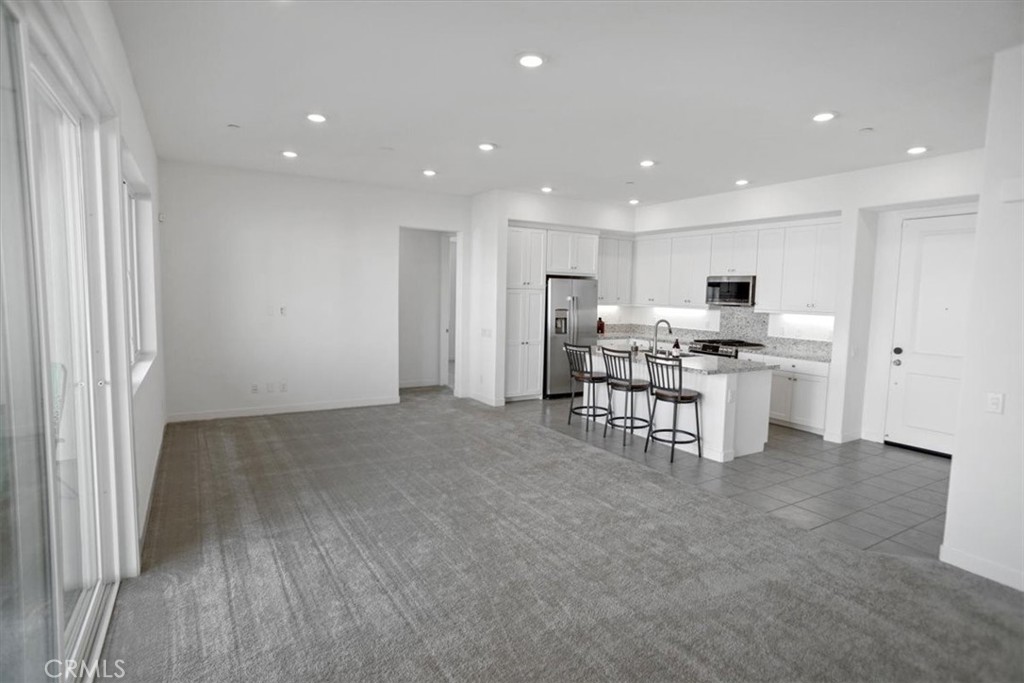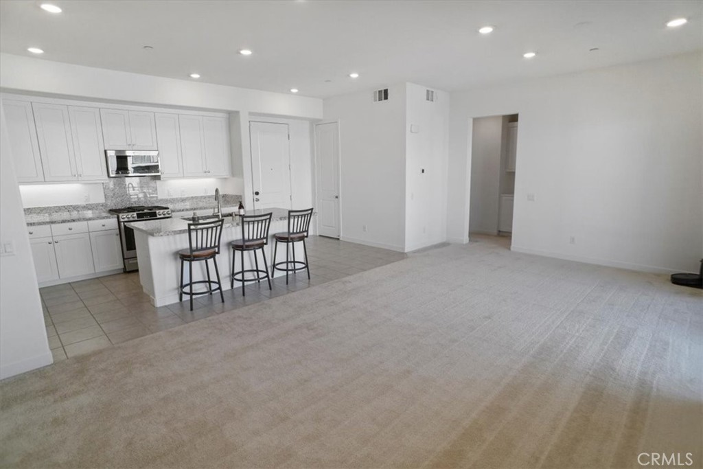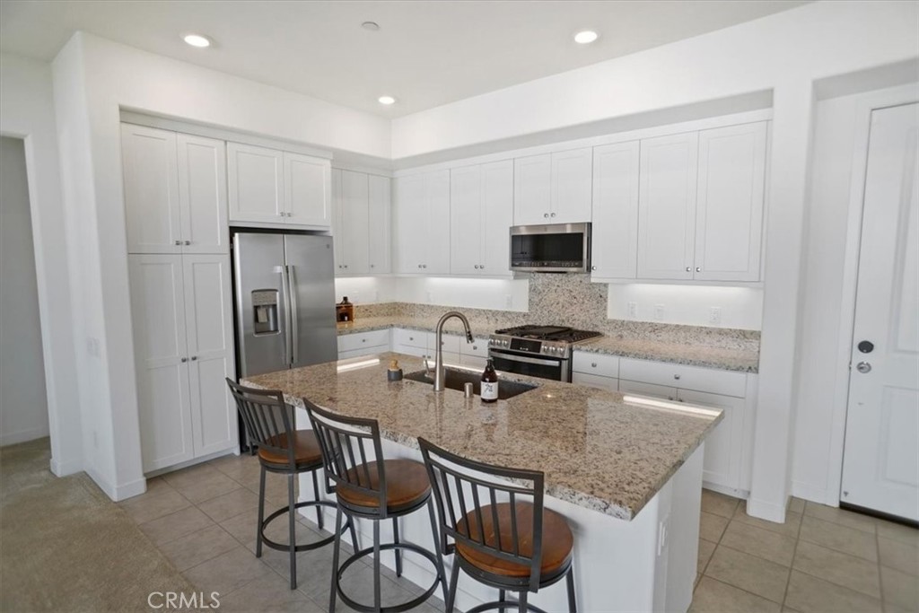 Beautiful Newer Construction Luxury Townhouse in Five Points with solar, just behind Magic Mountain! Built in 2022, this stunning home offers 3 bedrooms and 2 bathrooms, all on one level within a secure building. The upgraded kitchen features a large island with breakfast bar, stainless steel sink, dishwasher, oven, and microwave, white cabinetry with ample storage, granite countertops and backsplash, tile flooring, and recessed lighting. The open and spacious living room boasts new carpet, abundant natural light, large windows, and a sliding glass door that opens to a large private patio with a view—perfect for relaxing or entertaining. All three bedrooms are generously sized. The primary suite includes wood shutters, recessed lighting, an attached bathroom with dual sinks, walk-in shower, linen closet, and a walk-in closet. The hallway bathroom features an upgraded vanity with a shower/tub combination. Additional highlights include a separate laundry room, two-car garage, and plenty of guest parking. Conveniently located near shopping, schools, and freeway access, this home is part of a community offering resort-style amenities you’ll absolutely love. A must-see!