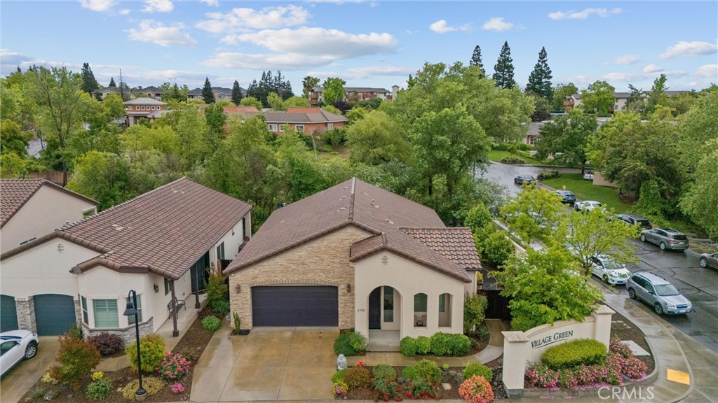 Beautifully positioned at the entrance to Village Green, 2755 Via Roma offers rare privacy, thoughtful accessibility, and exceptional pride of ownership in California Park’s most desirable 55+ community. With neighbors on only one side and a setting near the creekside greenbelt, this home enjoys an oversized lot feel, peaceful surroundings, and beautifully landscaped wraparound outdoor spaces. Inside, the home is spacious, warm, and impeccably maintained, with high ceilings, wide hallways and doorways, upgraded flooring, and a flexible floor plan that includes a separate front dining room or office and a generous rear living room open to the kitchen. Rich cabinetry, granite countertops, breakfast bar seating, gas cooking, plantation shutters, and abundant natural light create an inviting everyday living experience. The primary suite offers a large walk-in closet, dual-sink vanity, and accessible roll-in shower, while the guest bath is also thoughtfully designed for comfort. Additional highlights include an indoor laundry room, alarm and camera system, Culligan water softener, upgraded Fisher & Paykel dishwasher, built-in garage cabinetry, covered patio, drip irrigation, decorative fountain, and beautifully maintained grounds. The washer, dryer, and refrigerators may be included. Residents enjoy a quiet, well-kept community built in 2018, with associations sharing a security patrol with California Park, and an advantageous location. Beyond the home itself, Village Green offers an exceptional California Park lifestyle, with neighborhood lakes, walking and biking paths, parks, and beautifully maintained grounds creating a peaceful everyday backdrop. Residents enjoy access to nearby tennis courts, golf at Canyon Oaks, and the many outdoor amenities that make this part of Chico so sought after. California Park’s lakes and trails invite recreation close to home, while Upper Bidwell Park offers miles of hiking, biking, and natural beauty just minutes away. Designed for those seeking comfort, community, and low-maintenance living, Village Green offers the rare combination of refined downsizing and an enhanced quality of life.