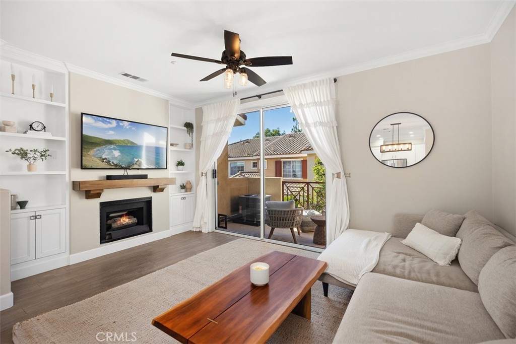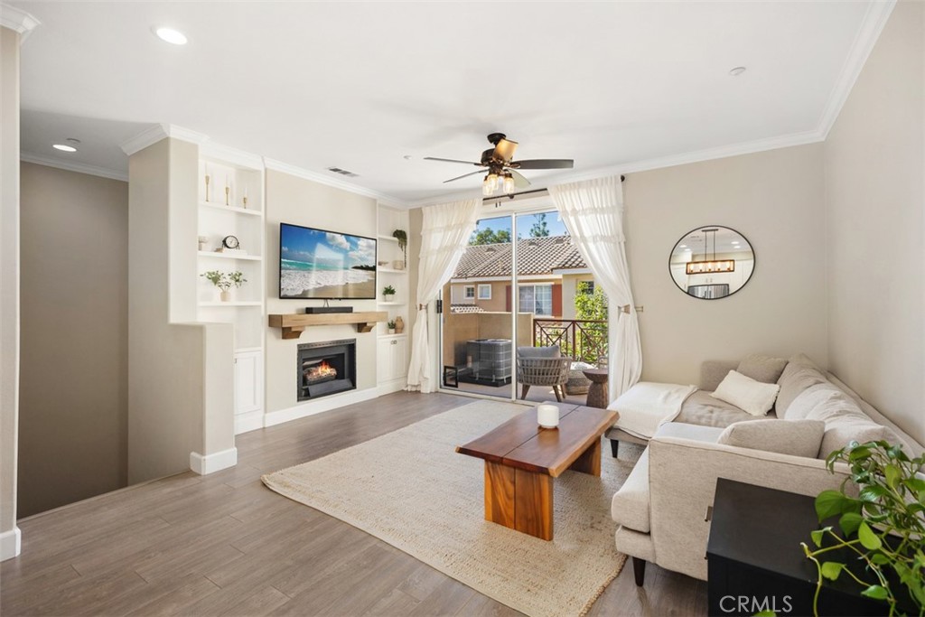 Beautifully remodeled, open-concept townhome featuring custom cabinetry, Quartz counters with marble backsplash, chef-style stainless steel appliances, upgraded lighting and fixtures, wood-look laminate flooring, and Carrara marble bathroom tile. Enjoy cozy evenings by the fireplace or sunsets from your private balcony. Includes direct garage access, low HOA, and no Mello-Roos! Prime location near Portola Community Park, hiking and biking trails, top-rated schools, shopping, dining, and easy 241 Toll Road access.