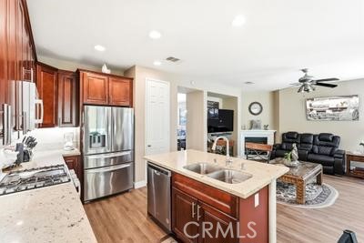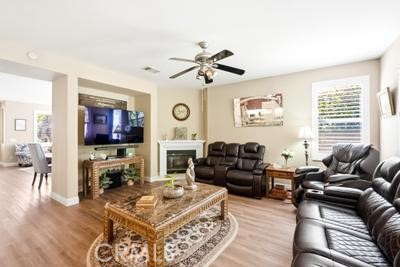Rare opportunity to own a beautifully updated single-story home in the highly desirable Tesoro Del Valle community, set on a picturesque street with stunning mountain views. Step into an inviting living and dining area filled with natural light, enhanced by plantation shutters, and stylish laminate wood flooring throughout. The thoughtfully updated kitchen features a gorgeous quartz island and opens seamlessly to a warm, welcoming family room complete with a cozy fireplace—perfect for everyday living and entertaining. Both bathrooms have been tastefully updated, offering modern finishes and a fresh, clean feel. Enjoy indoor-outdoor living with a covered patio ideal for hosting family and friends. Additional highlights convenient indoor laundry area and a spacious 2-car attached garage with built-in cabinetry for extra storage. Residents of Tesoro Del Valle enjoy resort-style amenities, including state of the art gym room, sparkling pools, tennis courts, a clubhouse, scenic lake, private parks, and access to award-winning schools. This is a true gem—don’t miss your chance to call it home!