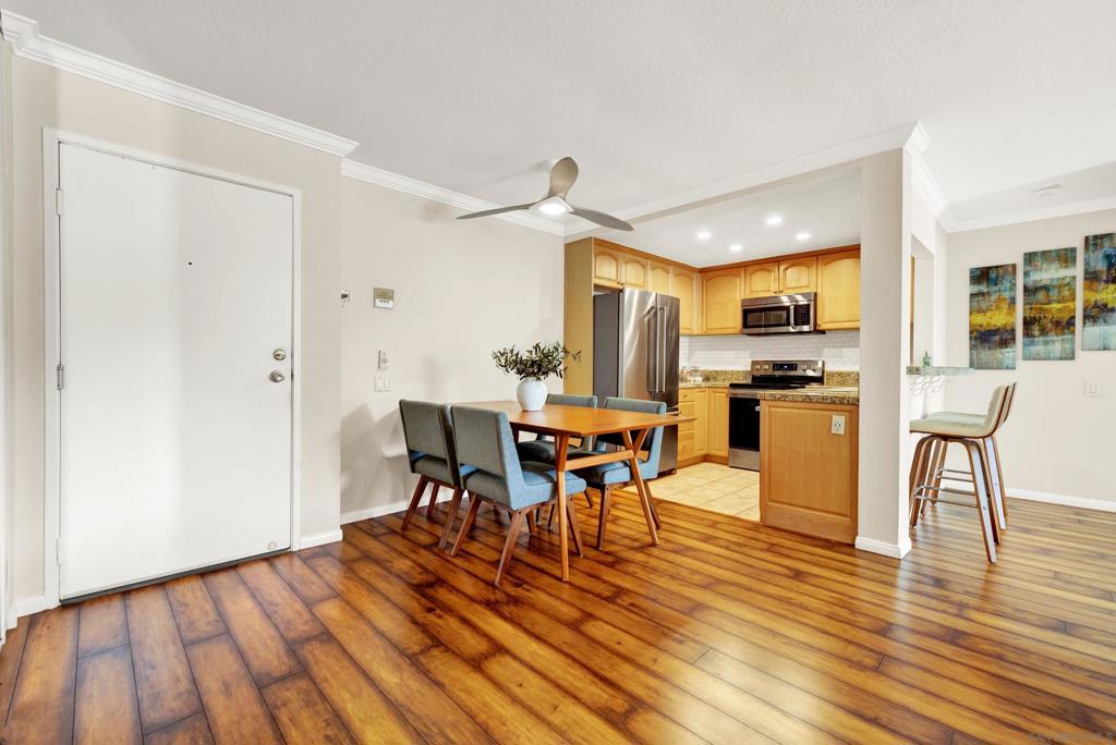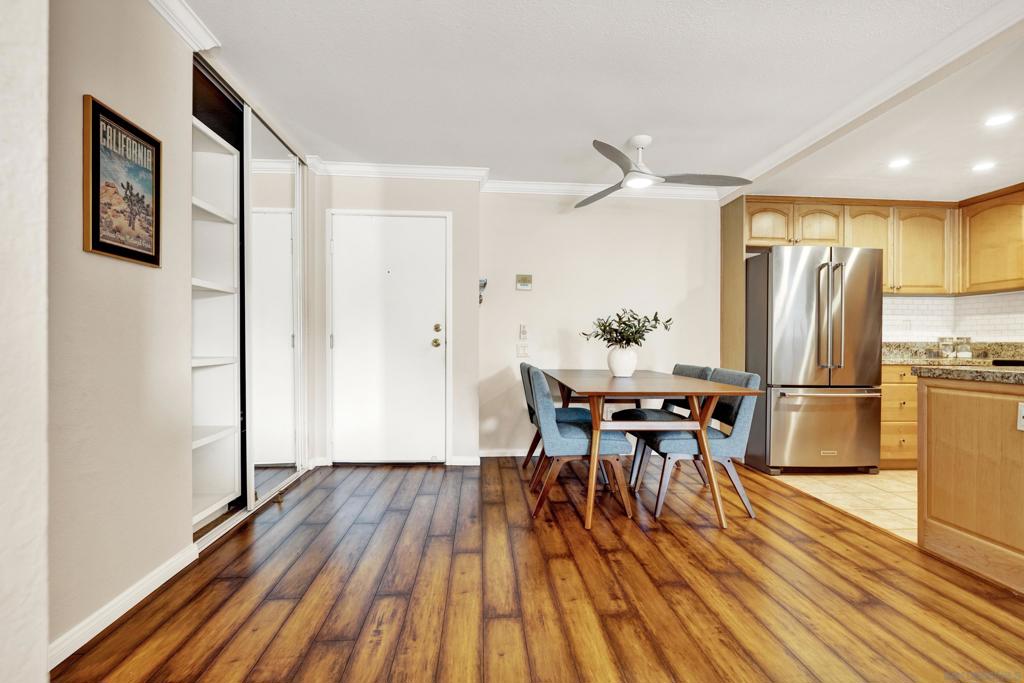 Welcome to an upgraded, spacious condominium in desirable Golden Hill. This two bedroom, two bath home is private and quiet, with large windows that bring light into your living space. Designer touches such as crown molding, newly refurbished bathroom, luxury laminate flooring, and kitchen granite countertops make the space a joy to be in. Note the newer high-end mini-split air conditioner, the quiet Bosch dishwasher, the in-unit washer and dryer that convey, and the designated parking space in the secure garage. All of this is complemented by the upcoming replacement of the main hallway carpet and paint by the HOA. Come and see, this one is priced to sell! UPGRADES AND BENEFITS 1) WiFi enabled Smart Samsung “Smart Things” mini-split air conditioning can be controlled from phone 2) Wood burning fireplace 3) One assigned parking place, second possible for rent from HOA 4) Hall bathroom remodeled 1 year ago 5) 1 year old Bosch dishwasher 6) 1 year old clothes washer 7) Mount for TV will convey, and will hold up to 85″ television 8) Stainless steel kitchen appliances 9) Crown molding 10) Balcony patio 11) Possible additional parking space for rent from HOA