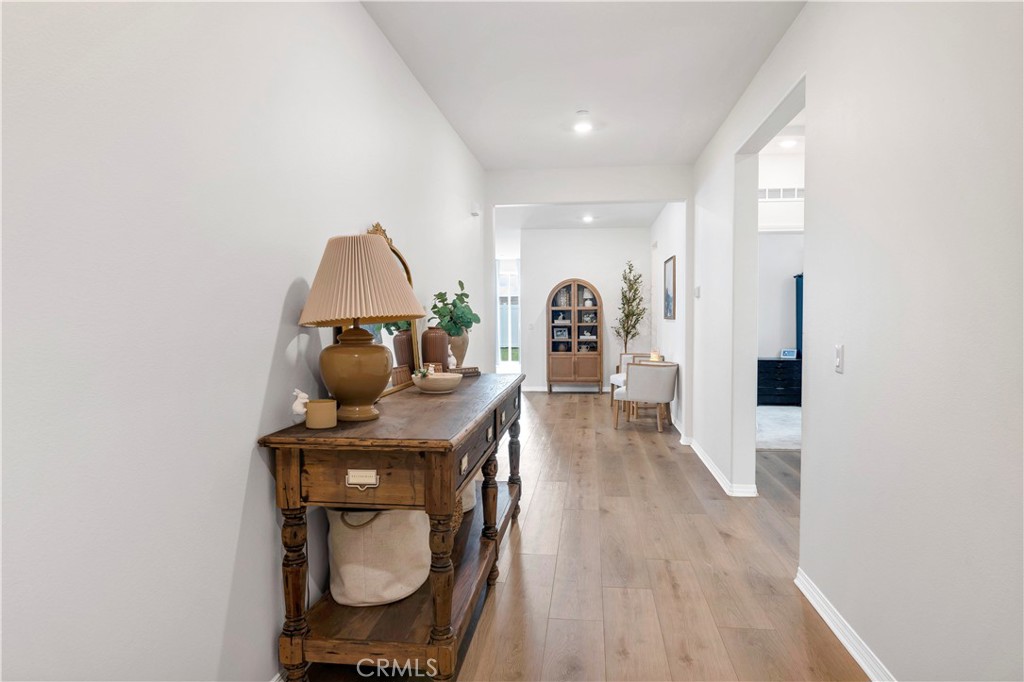 Welcome to this beautifully upgraded, move-in ready single-story home located in the highly desirable Hidden Terrace neighborhood of Menifee. Offering 4 Bedrooms, 2 Bathrooms, and approximately 2,336 Sq. Ft. of thoughtfully designed living space, this home combines modern style with everyday functionality. The open-concept layout is filled with natural light and creates a seamless flow between the kitchen, dining, and living areas, making it ideal for both daily living and entertaining. The kitchen features a large center island, granite countertops, a walk-in pantry, and ENERGY STAR GE appliances. The spacious primary suite serves as a private retreat with a spa-like bathroom that includes a soaking tub, glass-enclosed shower, dual vanities, and a generous walk-in closet. Additional features throughout the home include luxury vinyl plank flooring, fresh interior paint, upgraded ceiling fans, window coverings, a whole-home security system, and a water softener system. Situated on a premium lot, the fully finished backyard offers grass, concrete, upgraded drainage, sprinklers, and electrical already installed, providing a functional and low-maintenance outdoor space. Additional highlights include a Tesla backup battery. Located within the sought-after Hidden Terrace community in Mountains Edge, residents enjoy nearby parks, walking trails, and convenient access to shopping, dining, and major commuter routes including the 215 and 74. This home offers a rare combination of upgrades, location, and move-in readiness. Schedule your private showing today.