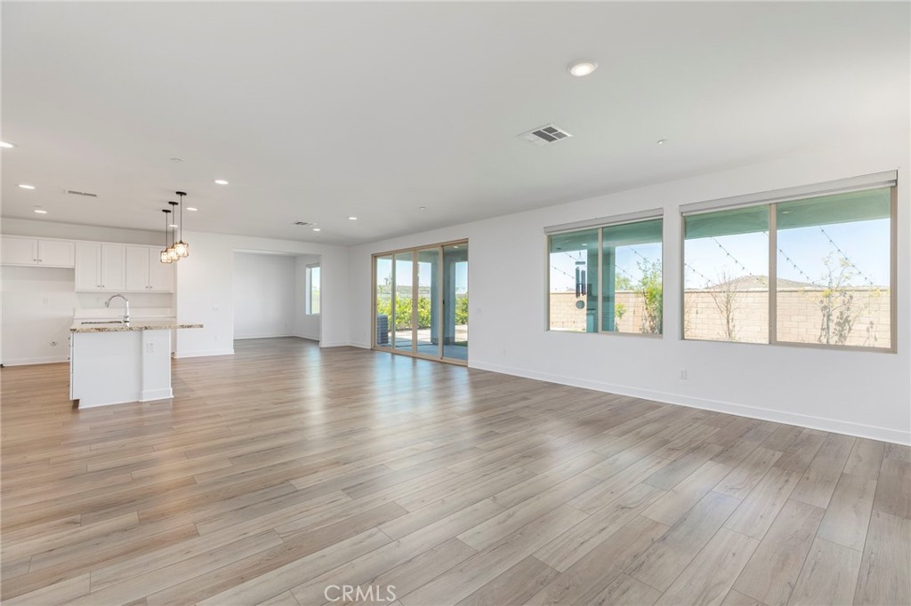 Built in 2021, this stunning Tri Pointe Home sits on a spacious 8,712 square foot cul-de-sac lot with no rear neighbors and beautiful views! The popular Magnolia floor plan features five bedrooms, including a convenient guest suite on the main level, three bathrooms PLUS a flex room adjacent to the kitchen PLUS an upstairs loft. Upon entering through the charming covered porch, you are greeted by a grand two-story entryway with an open rail staircase. The main level continues into an expansive great room with Luxury Vinyl Plank flooring and a 12-foot center-open sliding glass door that seamlessly blends indoor and outdoor living. The gourmet kitchen is a chef’s dream, boasting white shaker-style cabinetry, gorgeous custom granite and quartz countertops, and a large island with seating for three. Stainless steel appliances, an undermount single-basin sink, and elegant pendant lighting complete the space. Tucked just off the kitchen is a versatile flex room perfect for a home office or playroom. The second level offers a spacious loft situated near the primary bedroom suite, which overlooks breathtaking mountain views. The primary en suite bathroom provides a spa-like experience with two separate vanities, custom tile flooring, a walk-in shower with a seat, and a generous walk-in closet. Three additional bedrooms, a third full bathroom, and a dedicated laundry room with a sink and storage shelves are located down the hall. High-tech upgrades are found throughout the home including motorized smart blinds, a tankless hot water heater, LED lighting, Whole House Fan and fully OWNED SOLAR panels. Outdoor living is elevated by a double-length balcony that provides significant shade for the backyard patio below. The yard offers multiple areas for seating or lawn games, along with ample room to build a custom pool. Living in Spencer’s Crossing grants access to world-class amenities including three resort-style pools, a spa, sports parks, scenic walking trails, and a clubhouse. This home is located near top-rated schools, premier shopping including the new Costco, upscale dining, and the 215 freeway. Come see this exceptional property today!