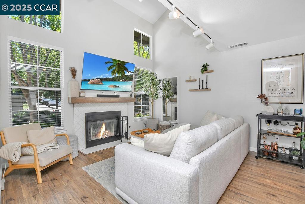 Beautifully updated townhome Style in sought after Shadowbrook community. This 2 story home features Kitchen with updated Quartz Countertops, Breakfast Nook/Flex space, Formal Dining Area with bench seating/storage, Vaulted Ceilings in Living Room with Fireplace. Half Bath downstairs. Fun Dog Den or Cat Condo under the stairs for your fur baby or more storage! 2 Primary Suites & Updated Bathrooms. Laundry is located upstairs with additional storage & drying rack. 1 Car Garage with interior access. Fenced in patio. Enjoy relaxing in your yard! This community offers a Pool, Spa & Clubhouse. HOA is $465/Month. Short walk to Holiday Highlands Park. Easy access to Dining, Stores, HWY 4, 680 & BART. OPEN TUESDAY 8/19 10:30-12:30PM