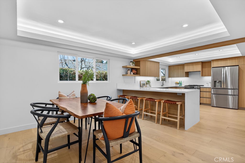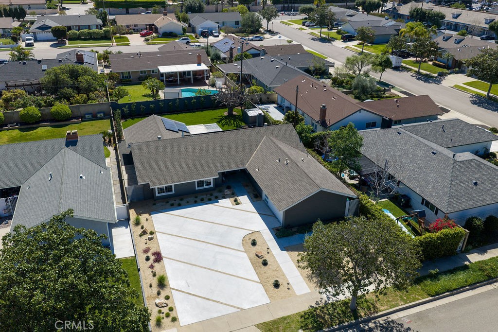 Completely remodeled Orange home on a rare 10,000 sq ft lot in a quiet neighborhood surrounded by Villa Park. Completed over the past year, this beautifully renovated property blends modern upgrades with the warmth and charm of the original home. Curb appeal shines with a new DG-accented driveway, fresh drought-tolerant landscaping, and a stylish front elevation with bold, contemporary colors. A covered entry and new side-lit front door create a welcoming first impression. Inside, the open family room features a dramatic floor-to-ceiling brick fireplace, elegant engineered hardwood floors, recessed lighting, fresh baseboards, and a sliding glass door leading to the backyard. The fully remodeled kitchen is built for both everyday living and entertaining, featuring custom cabinetry, waterfall-edged stone countertops, a peninsula with bar seating, stainless steel range with built-in hood, floating shelves, stainless appliances, and abundant storage. Another great feature is the transition room between garage and kitchen complete with custom cabinets for kitchen overflow storage. The kitchen flows seamlessly into the dining area, comfortably fitting a 6–8-person table. A redesigned laundry room offers built-in cabinetry and flexible space ideal for a craft room, home office, or additional pantry storage. The spacious primary suite includes a finished walk-in closet and a private sliding door to the backyard patio. The spa-inspired primary bathroom features a large soaking tub, stone walk-in shower with seamless glass, private water closet, and custom dual-vanity cabinetry. The hall bathroom has also been beautifully updated with French oak-style cabinetry, stone countertops, and a walk-in shower with designer fixtures. The expansive backyard sits on an oversized 10,000 sq ft lot and features lush new grass, a covered patio, raised garden beds, and fresh privacy hedging—perfect for relaxing or entertaining. Additional highlights include fully finished custom primary and secondary closets, paid Tesla solar, ADA no-step entry, dual-pane vinyl windows, a fully drywalled garage with repoured pad, and brand-new front and rear landscaping. The home also offers convenient proximity to Villa Park shopping, schools, and nearby freeway access. This lot also boasts wide side yard access and plenty of room for an ADU addition. Move-in ready and thoughtfully upgraded in one of Orange’s most desirable locations.