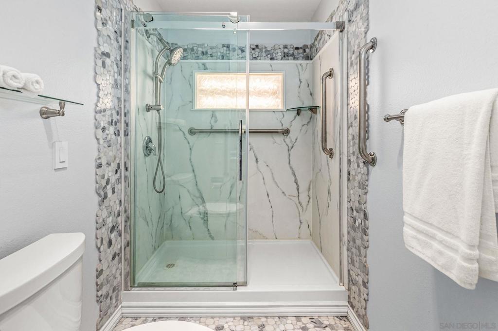 Coastal living in this rarely available ground-floor, end-unit 2-bedroom, 2-bath condo offering exceptional privacy with only one shared wall. Designed with a beach-inspired concept, this home features engineered wood flooring, tile throughout, beach-rock finishes, and large windows that flood the space with natural light. The spacious living room is highlighted by a fireplace with an oversized hearth, creating a warm, sophisticated ambiance ideal for entertaining or unwinding. Enjoy tastefully remodeled bathrooms, forced-air gas heating, and the convenience of in-unit laundry. Includes assigned covered garage parking plus easy street parking for guests. Located in a beautifully maintained community with a Community Room and BBQ area, and just moments from restaurants, bars, coffee shops, shopping, Shelter Island, and the San Diego Yacht Club. A standout opportunity for young professionals, first-time buyers, or anyone seeking the Point Loma lifestyle.
