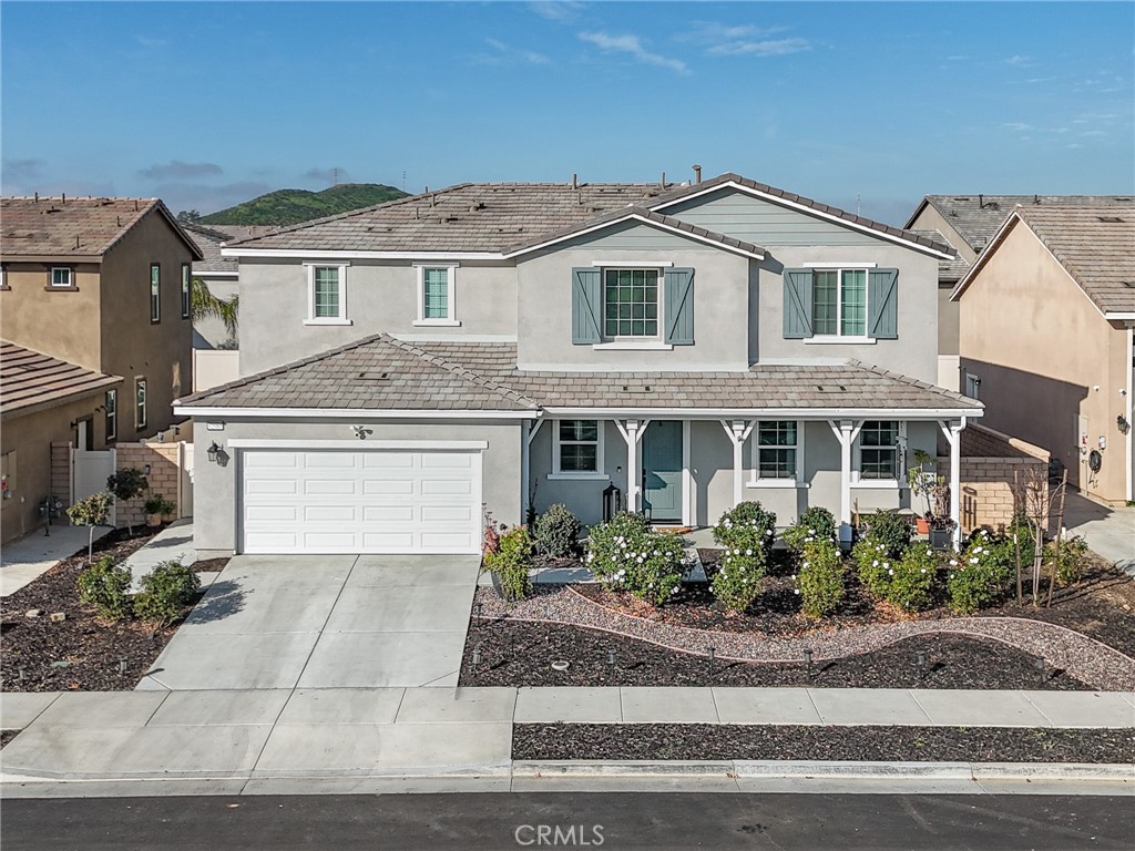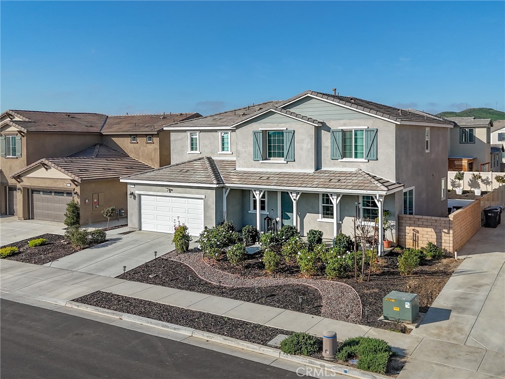 PAID OFF SOLAR | LARGE BACKYARD | NO FRONT NEIGHBORS – 5. FULL BEDROOMS + LARGE SEPARATE DINNING ROOM + UPSTAIRS LOFT – Welcome to 32085 Deardoff St. As you drive up to the home you will notice the ample parking in front of the home and no front neighbors which gives you tons of privacy and parking for guests & parties. The front of the home has a large covered patio perfect for enjoying the evenings. You’ll notice you are also walking distance from the large city park, multiple smaller community parks and the new Liberty High School. As you enter the home you’ll be greeted with high ceilings, tons of natural lighting, a foyer with a coat closet and to your right a large dining room perfect for entertaining. You’ll also notice TONS OF UPGRADES THROUGHOUT the home such as PAID OFF SOLAR, 8 FOOT DOORS AND HIGH CEILINGS ON THE FIRST FLOOR AND SECOND FLOOR, BUILT IN SPEAKERS IN THE LVIING ROOM AND BEDROOMS, LVP FLOORING, BUILT IN APPLIANCES, Prewired rooms for fans/light fixtures and more.. The living room is spacious and offers built in speakers for your enjoyment. There is also a large storage closet perfect for toys, storage, or pets in the living room. The kitchen overlooks the breakfast nook and living room and offers tons of storage space with tall cabinets and Ethereal Glow Quartz Countertop. KITCHEN UPGRADES INCLUDE: BUILT IN APPLIANCES, BRONZE GOLD POT FILLER, UPGRADED WHITE STONE SINK AND EXTENDED CABINETS. The walk in pantry is spacious and offers tons of shelf space. As you work your way past the living room you’ll find the garage door, the mudroom with another storage closet, and the 1ST FLOOR SPACIOUS BEDROOM AND FULL FIRST FLOOR BATHROOM. The first floor bathroom is spacious, with cabinet storage and a walk in shower. The 1ST floor bedroom is large and has a spacious closet and a large window for natural light. As you work your way upstairs you’ll be greeted by the large LOFT, 9 FOOT CEILINGS AND 8 FOOT DOORS throughout the second floor. The laundry room is upstairs and also is pre-plumbed for a sink. There are a total of 4 bedrooms upstairs plus the loft and laundry room. The primary bedroom is spacious and has built in speakers, a large bathroom with a tub and a large walk in closet. This home also has a large finished backyard featuring diamond cut concrete, rose trees, drains, and turf. This space is perfect for entertaining and hosting large gatherings and also offers larger than normal side yards for this community. Fully move in ready!