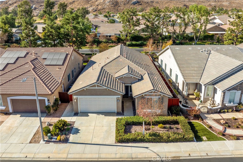 JUST REDUCED. MAKE THIS A MUST SEE. Discover this beautiful Invitational 3 model home, perfectly located on a quiet cul-de-sac in the highly 55+ community of Four Seasons at Hemet. This fully gated neighborhood offers 24/7 security and is surrounded by the scenic San Jacinto Mountains and Hemet Golf Club, providing a serene and picturesque setting. Step inside to find an inviting open floor plan with vaulted ceilings, engineered hardwood and tile flooring, and cozy carpet in the bedrooms. This home offers 2 bedrooms, plus a versatile office/den. The spacious kitchen is a chef’s dream, featuring a nearly new refrigerator, abundant counter space, and a large island, perfect for meal prep and entertaining. Outside, the low-maintenance front yard and peaceful backyard make for effortless outdoor living. The backyard is a private escape, ideal for relaxing or hosting small gatherings. As a resident of Four Seasons, you’ll enjoy resort-style amenities designed for an active lifestyle. The 14,859-square-foot Lodge includes a bistro, ballroom, salon, library, card and billiards rooms, and even a private movie theater. Outdoor amenities include a sparkling pool, tennis and pickleball courts, bocce ball, and walking trails. The community also offers planned activities, fitness classes, and clubs to suit a variety of interests. With its prime location near mountains, lakes, and beaches, this home offers the perfect blend of comfort, convenience, and vibrant living. Don’t miss your chance to experience the exceptional lifestyle at Four Seasons.