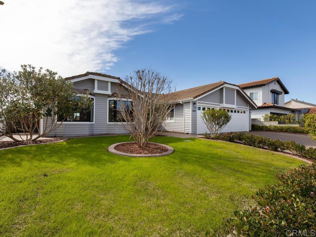 SPECTACULAR 1 STORY VIEW HOME IN CARLSBAD!! This rarely available & highly desirable Spinnaker Point home is in Move-In ready condition. Nothing to do but bring your comfortable chair to sit in your Backyard & enjoy the panoramic view. The sellers have spared no expense including completely painting the inside & outside of the home. There are brand new exterior lighting & interior light fixtures plus new hanging entry light & Dining Room chandelier. The double door front entry takes you into the Formal Living Room & Formal Dining Room. There is brand new carpet throughout the Living Room, Dining Room & all Bedrooms. The rest of the flooring in the home is tile. The Gourmet Kitchen is a chef’s delight with granite counters, white cabinets, all new stainless steel gas range, microwave & dishwasher. Plus, the new Kitchen faucet, garbage disposal & cabinet hardware. The drop-down ceiling has been replaced with recessed can lighting. There is a Breakfast Bar & a Breakfast Nook for casual dining. The sliding glass door in the Family Room as well as the one in the Living Room take you out to your Entertainer’s Backyard. Panoramic views all the way to the ocean! There is a custom brick covered patio that wraps around to the large side yards, planters all around the yard with lovely flowering shrubs & tropical foliage & lots of grass for the kids & pets to play. Multiple seating options for relaxing & watching the sunset. The Primary Bedroom has a vaulted ceiling & windows looking out at the Backyard making it light & bright. The Primary Bathroom has been updated with granite counters, single sink vanity & a separate room for the step-in shower which has been upgraded with floor to ceiling tile & sliding glass doors. There are 2 separate closets, allowing plenty of space for the shopper in the family. The 2 additional Bedrooms have both been extended out adding much more square footage than the original model. Both rooms have large walk-in closets, new ceiling fans & window seats with additional cabinetry. There is no lack of storage in this home. The 3-car garage includes cabinetry, overhead racking AND pull down stairs for additional storage above the garage. This home is located in one of the top zip codes in the county & has one of the best school districts, the location is close to any shopping you can think of & just minutes to the 5 freeway AND the 78 freeway. A MUST SEE!!
