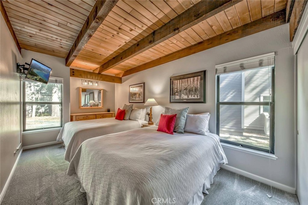 This stunning property could be yours as an investment property or for personal living! This home is nestled in the trees in a prime corner location of the highly desirable Lakeland Village Community. This is an open concept 3-story townhome, steps away from a private beach and pier. Amenities include swimming pools, hot tub, sauna, fitness center and other village amenities. 1 mile to Heavenly Village, Gondola and Stateline. 1.9 miles and you are at the lifts, and there is a shuttle for residents and guests. This is a walk anywhere location, tucked away in a private setting, excellent dining, nightlife nearby and Whole Foods is across the street! Home Details: This beautiful remodeled mountain home has 3 bedrooms 2 bathrooms. The ground level opens to a large entry area, and it holds the master bedroom, guest bedroom, laundry, linen closet and bathroom. The open concept living room, dining room, kitchen, second bathroom are on the second level. The loft is on the third level and has enough space for two beds. There are vaulted ceilings, large picture windows and sliding doors that let in natural light on the second level. Kitchen is open and faces the living and dining room, and features granite countertops, all appliances included. There is a balcony on the second level with outdoor seats as well as a storage/ski closet. Full sized washer and dryer, gas fireplace. This home is being offered mostly furnished with high quality pieces that are beautiful in this mountain setting.