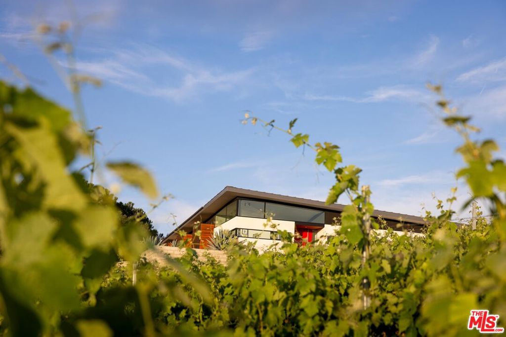 An incredible modern architectural home with income producing vineyard, in the heart of Temecula Wine Country. The Kite House, designed by Southern California-based architecture firm, Architects Magnus, was built using fire resistant hybrid construction methods with a high strength steel frame, and sustainability in mind with a standing seam metal roof under a 10kw solar system. All of the interior fixtures and appliances are premium quality and mostly imported; from the commercial grade aluminum door frames with solid core door panels, skylights, Duravit bathroom cabinets, and ORTAL tunnel fireplace (all imported from Germany), the faucet hardware is Hans Grohe, and the kitchen is all Miele (combo / steam oven, built-in coffee machine, fridge, dishwater and induction cooktop). The kitchen countertops are custom no-seam Silestone, made in Italy. The hydronic a/c system is custom made from the Italian company, Messana. Throughout the home you find Lutron lighting, and each bedroom has a commercial grade lift & slide door and window system from Reynaers, designed in Belgium. Head outside to the Pentair mineral pool and jacuzzi with propane and electric heater, and low voltage landscape lighting on photocell. Everything from the coffee machine, a/c system, lighting and pool systems can all be controlled via an app. And then of course you are surrounded by your own vineyard, ‘Moto Vino’ (valued as a $600k+ business, conveying with the sale of the home) that was developed by Drake Enterprises of Temecula, utilizing efficient machine harvesting and is fully OSHA compliant with service roads, filter station and drip irrigation (3.3 acres of Syrah, and 0.5 acres of Grenache Blanc vineyard that generates $40-$50k in revenue/year for another projected 20+ years). This is an incredibly unique offering of Southern California modern architecture meets vineyard that was planned and developed in-tandem to maximize the 4.88 acre properties view orientation, grape yields and functionality.