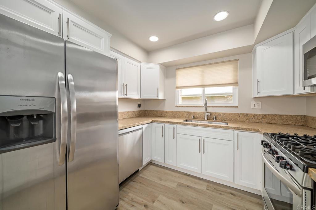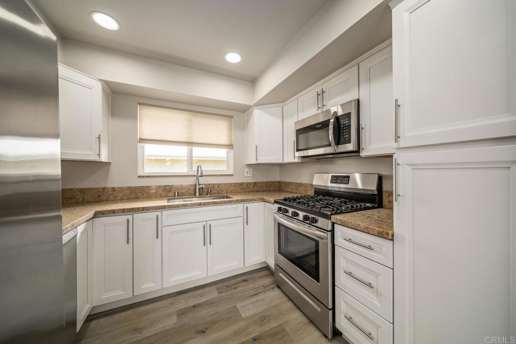 Beautifully remodeled 2 bed / 1 bath Oceana home with private outdoor patio. This unit received a comprehensive remodel a few years ago that included new cabinets, quarts countertops, stainless steel appliances, custom tile shower, luxury vinyl planked flooring in living room and large format tile throughout the living space. The home’s welcoming front patio and rear private patio space are there to be enjoyed year round. This beautiful residence comes complete laundry room, additional storage and 1 car garage. Located in the vibrant 55+ community of Oceanside Community Association (Oceana), just miles from the coast, Oceanside beaches and minutes away from shopping, dining, golf, parks and much more. Oceana’s location provides access to everything Oceanside and San Diego County has to offer. Oceana’s amenities include a sparkling pool, spa, clubhouse / rec. room and HOA provides provides Water, Sewer, Trash Pickup, Basic Cable/TV Services, Common Area Maintenance and Landscaping, Exterior Building Maintenance, Limited Insurance.