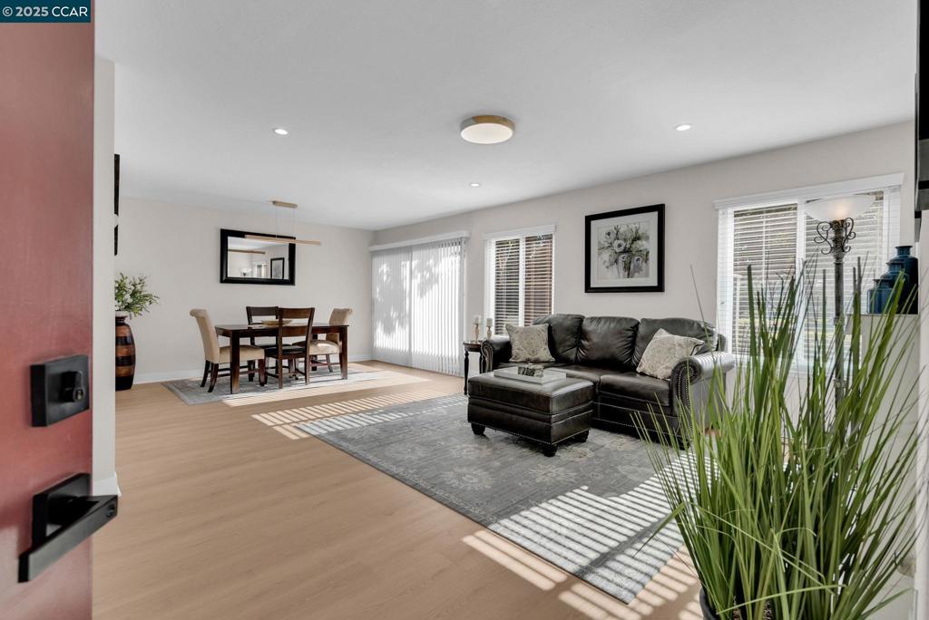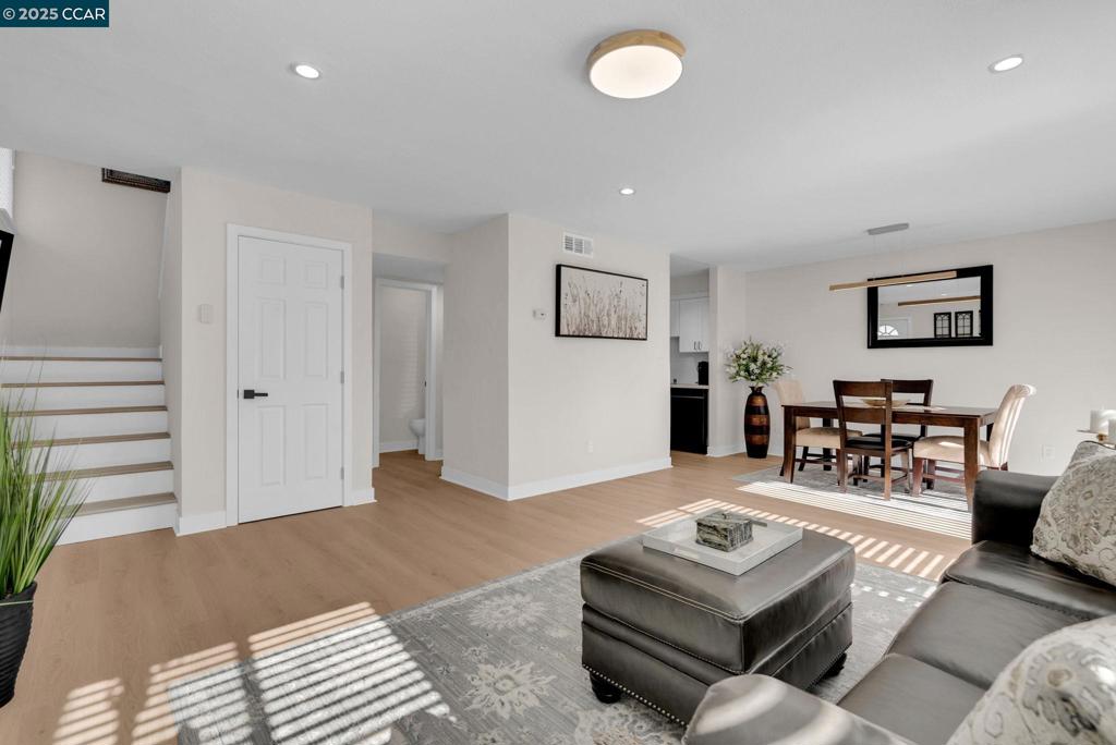 Absolutely stunning, fully updated 2-story, townhouse-style end unit condo facing common area in the heart of Hercules. Updated prior to seller purchasing. Beautiful kitchen w/quartz counters, ample cabinets, upscale appliances, gas stove. Lots of natural light in spacious living rm/dining area. Fireplace w/gas starter, new central A/C installed in 2024, ceiling fans in each bedroom. Primary bedroom has modern en suite w/dual sinks, updated shower stall & walk-in closet. Upstairs hall bath also has dual sink. New low-maintenance vinyl flooring thruout downstairs, new carpet in 3rd BR. In-unit laundry closet. Private patio. Spacious 2-car detached garage for parking & storage. Multiple community pools w/hot tub & community tennis courts. One pool is just steps away. Must see this gorgeous condo that exudes elegance & serenity. Walking trails to waterfront w/beautiful bay views. Close to freeway access, shopping, restaurants & amenities. This is truly a 10–don’t miss out!