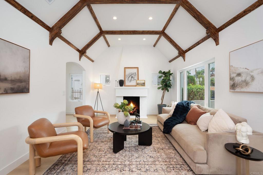 This luxurious, fully remodeled home delivers impeccable design, modern comforts, and cottage character throughout. Entering through an arched wood door, warm natural light fills the living room, where vaulted ceilings with striking exposed beams and a handsome fireplace create an unforgettable first impression, evoking the charm of a Tudor-inspired storybook home. The flow continues into a bright dining area that opens to a beautifully reimagined kitchen featuring custom cabinetry, sleek surfaces, wood-accented walls, and gleaming appliances, perfect for both everyday cooking and elevated entertaining. A peaceful primary suite and additional well-appointed bedrooms offer flexibility for guests, work, or creative spaces. Spa-inspired bathrooms showcase refined finishes, while a dedicated office nook and a spacious laundry room add everyday convenience. An inviting deck is ideal for morning coffee or evening unwinding. Beyond it stretches a generous landscaped backyard shaded by mature trees, an effortless extension of the living space. A large detached garage offers storage, parking, or potential creative use. Set in a treasured neighborhood celebrated for its wide streets, architectural charm, and strong community pride, the home enjoys proximity to beloved local cafés, parks, walking routes, and quick access to Culver City, DTLA, LAX, and the Westside. Come experience its charm in person!