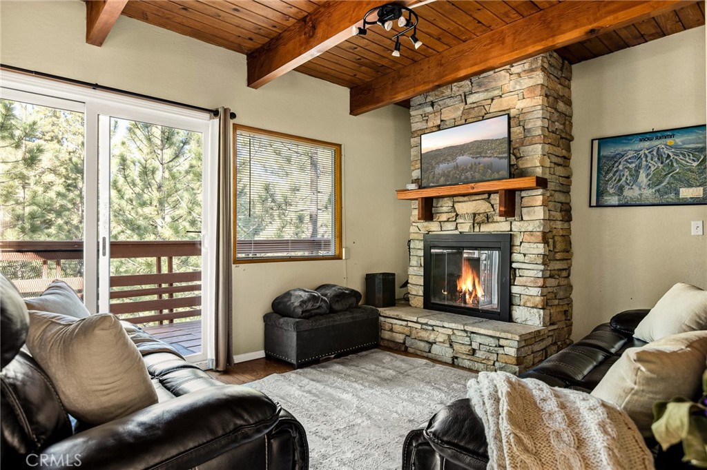 Incredible opportunity in one of Big Bear’s most sought-after neighborhoods! Located near the end of a quiet cul-de-sac in Moonridge and adjacent to the national forest for endless hiking, snowshoeing, sledding and mountain biking opportunities right from the backyard! This beautiful home, recently updated with new flooring and kitchen counters, features a cozy living room with beamed ceilings, 3 bedrooms and 2 bathrooms (one bed and bath on main level for easy living). This property features dual pane windows and sliders throughout, ample parking and a new jacuzzi overlooking the forest and has been a successful short term as well as long term rental. Easy access to the ski slopes, the newly enhanced Moonridge Village with restaurants, shops and small businesses. Quiet and serene, yet minutes to all the best Big Bear has to offer!