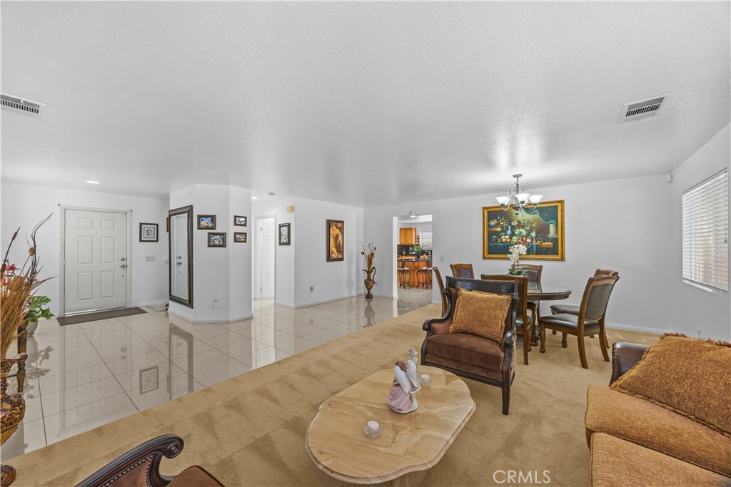 Stunning home located in the highly desirable Rosetta Canyon community, offering 5 bedrooms plus a den, 3 full bathrooms, and 1 half bath. The home was freshly painted in 2024 and features a brand-new furnace with all duct work recently replaced. Ideally situated just minutes from shopping, dining, Lake Elsinore, and the 15 Freeway, this home combines comfort with convenience. Upon entry, you’re welcomed by a formal dining area with tile flooring that flows into a spacious open-concept layout—perfect for both everyday living and entertaining. The beautiful kitchen features sleek black granite countertops and ample space for cooking and gathering. All five bedrooms are located upstairs, including a generously sized primary suite with a large walk-in closet. The additional four bedrooms are all above average in size, with two also offering walk-in closets. The upstairs is fully carpeted and has been well maintained, presenting a clean and inviting feel throughout. Step outside to a private backyard retreat, complete with a fire-resistant covered patio—ideal for relaxing or entertaining year-round. The home also includes leased solar with a low monthly payment of $76, which the buyer will assume. This is a wonderful opportunity to own a spacious, well-maintained home in a sought-after neighborhood