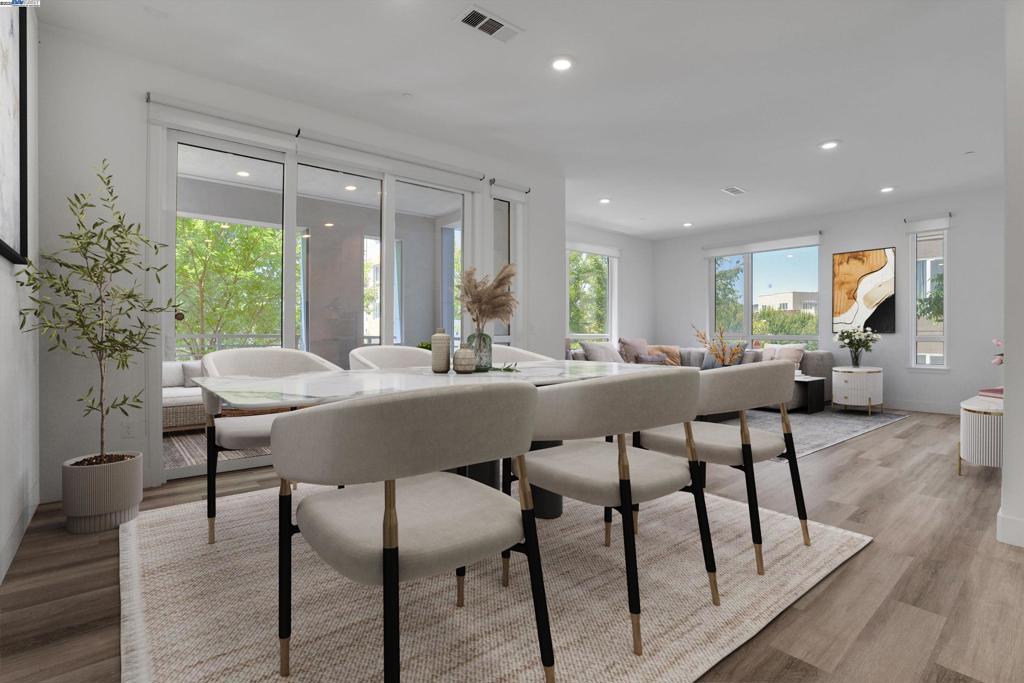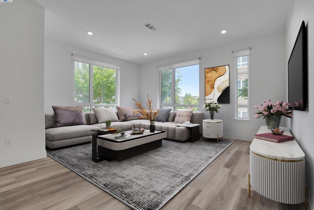 Modern comfort meets prime convenience in this luxurious 3-bed, 2-bath condo located in the heart of Fremont. This spacious ground-floor end unit features an open-concept layout with high ceilings, expansive windows, and abundant natural light throughout. The kitchen showcases sleek cabinetry, modern countertops, and a large island perfect for entertaining. The generously sized primary suite offers a walk-in closet and double vanity, while two additional bedrooms are ideal for family, guests, or a home office. Additional highlights include in-unit laundry, central A/C and heating, and a private patio perfect for relaxing outdoors. This home includes two assigned side-by-side underground parking spaces, complete with an EV charger—a rare and valuable convenience. Enjoy access to resort-style amenities including a pool, fitness center, clubhouse, playgrounds, and more. Conveniently located within walking distance of Warm Springs BART, with easy access to major freeways and tech campuses, offering the perfect blend of modern living and commuter ease.
