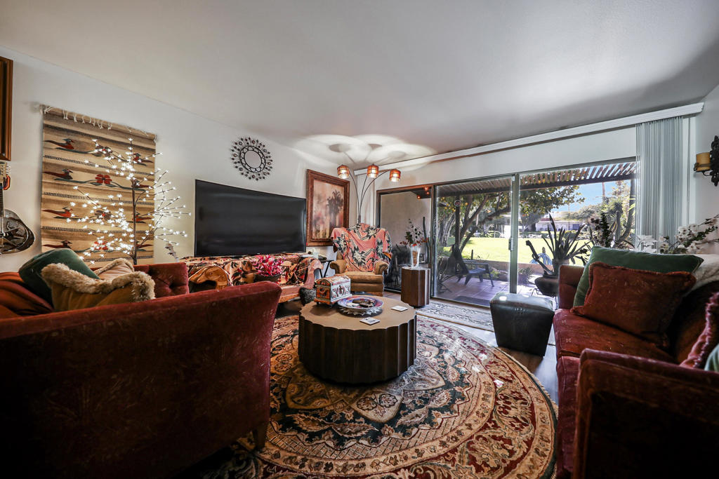 Location, Location!!!!! Charming 2 bedroom, 2 bath condo with 1 car garage. Interior laundry. This is a quaint, quiet 12 unit complex with expansive central green belt with pool, spa and Views, Views,Views! About 2 blocks to El Paseo, the Rodeo Drive of the Desert. Close to shopping, Restaurant’s etc.