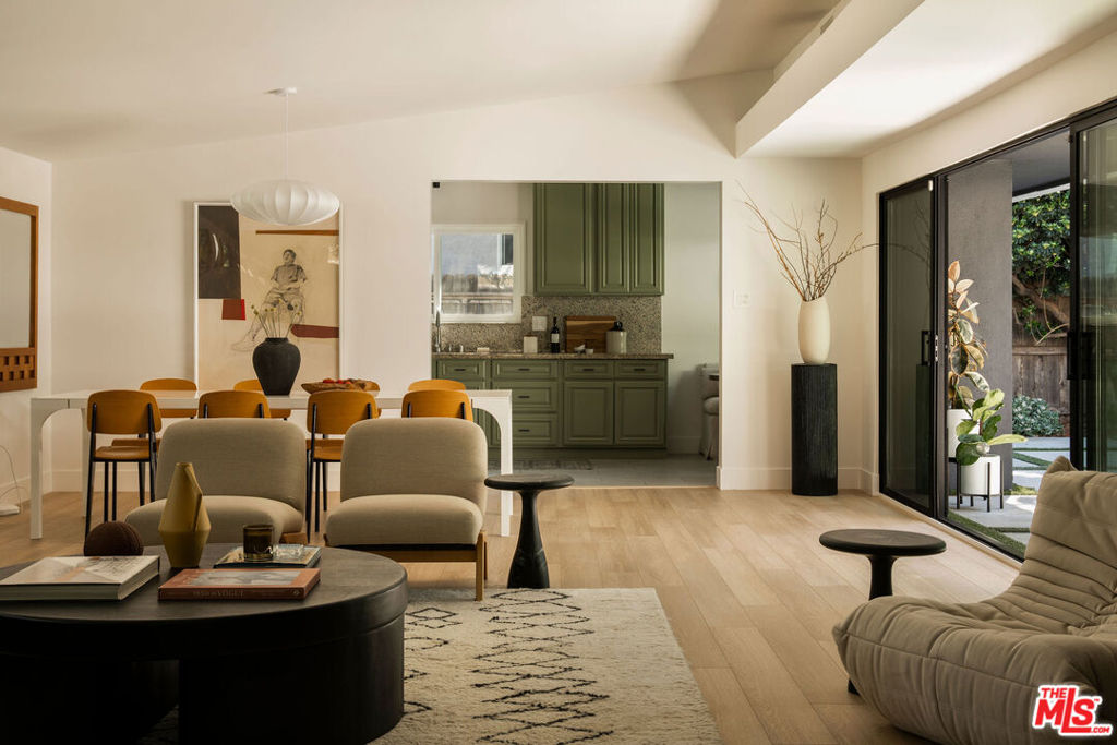 Welcome to this newly reimagined California Mid-Century Modern residence offering an exquisite blend of architectural nostalgia and contemporary sophistication. The home’s traditional layout elegantly wraps around a sprawling central patio, creating a seamless indoor-outdoor sanctuary designed for entertaining and lounging. At the center of this private oasis lies a newly remodeled, nine-foot deep swimming pool, perfectly framed by picturesque windows and sliding glass doors that invite natural light into every corner of the open-concept interior. The home has a refined warmth aesthetic, characterized by neutral flooring, earthy granite countertops, and curated MCM-style lighting. Beyond the three spacious bedrooms, a versatile bonus space offers the flexibility required for modern living: whether a professional home office, media room, or a private guest suite. The primary retreat features a spa-inspired bathroom equipped with a Jacuzzi soaking tub, Toto bidet, and sleek Robern Uplift medicine cabinets, all with direct sliding-door access to the sparkling pool. Beyond its designer finishes, the home is anchored by a suite of high-performance infrastructure designed for the modern era. Sustainability and wellness are seamlessly integrated through solar panels, dedicated EV charging station, tankless water heater, ecobee smart home thermostat and comprehensive entire-home water filtration system. With the added security of private gated access and radon mitigation system, every detail has been meticulously considered. Nestled in the heart of Sherman Oaks village, just blocks from the vibrant boutiques and celebrated dining which run along the famous Ventura Boulevard, schedule showings today as this home will not last!