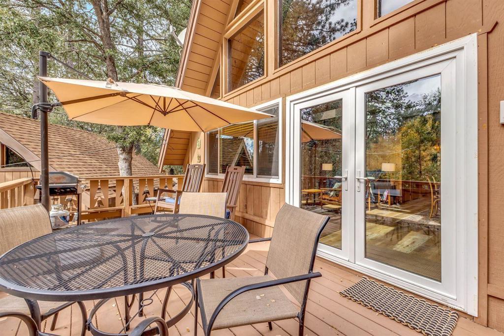 Classic Chalet-Style Mountain Cabin, featuring 2 bedrooms and 1.75 bathrooms sits nestled among the pines. This inviting charmer blends classic mountain character with cozy comfort. Living/dining area, high open beam ceilings and a wall of glass, all add to help bring light and the surroundings inside. The main level also includes the bright, efficient kitchen with newer appliances, the main bedroom and full bath all leading to the enclosed back yard doggie/cattery. The upstairs loft offers a second bedroom or office plus a 1.2 bath. A detached 1-car garage and circular driveway provide convenient access and plenty of parking. The property also features a beautiful all-season greenhouse and patio, surrounded by a wooded setting-ideal for garden enthusiasts or those who enjoy tranquil outdoor spaces. The present owner has made extensive improvements, including FAU and mini-split, dual glazed windows and door, portable generator/wiring, light fixtures, retaining wall and multiple garden areas. This is the proverbial turn-key property, with all furnishings included, so whether used as a full-time residence or parttime get away, this cabin captures the essence of true alpine living.