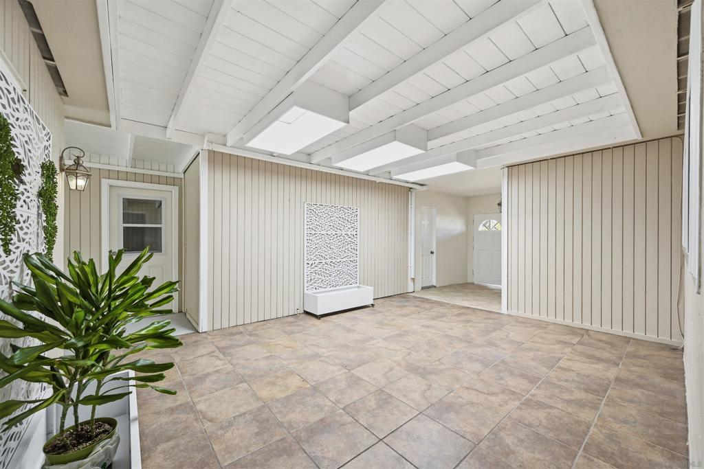 California Ranch style home tucked away on a cul-de-sac in the desirable Allied Gardens neighborhood.3- bedroom,2 bath residence offers a blend of comfort and scenic Mountain views and surrounding hills. A welcoming covered courtyard with skylights creates a gracious entry and an inviting space to enjoy year-round. Inside, new interior paint, recessed lighting, and gray vinyl plank flooring with warm undertones. The kitchen features granite countertops, generous cabinetry, and stainless steel appliances. Both full bathrooms were updated with stylish vanities and custom epoxy shower and tub enclosures. Additional highlights include dual-pane windows, central HVAC, a full two-car garage, and a detached bonus flex room ideal for an office, studio, or creative space. A covered patio extends the living area outdoors, complemented by mature fruit trees. Convenient access to shopping, dining, Mission Trails Regional Park, and Interstates 8 and 15. A rare opportunity to own an Allied Gardens gem. Enjoy ownership with no HOA or Mello-Roos fees.