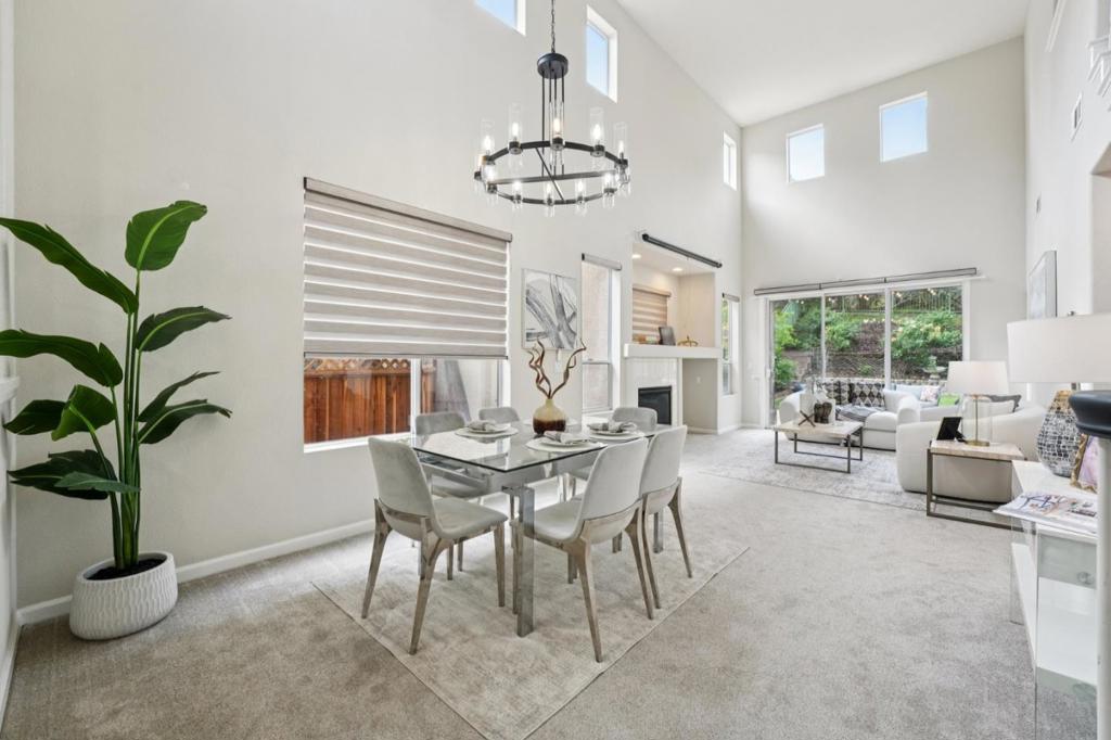 Welcome to this lovely home in the highly sought-after gated Silver Creek Country Club. The beautifully updated 3-bedroom, 2.5-bath residence offers comfort, style, and modern convenience throughout, with soaring high ceilings bringing in ample natural light all day long. The remodeled kitchen features quartz countertops, stainless steel appliances, and newer smart upgrades. Custom Levolor smart window coverings, fresh interior paint, and newer carpet enhance the home’s bright and contemporary feel. The conveniently located main-level primary suite offers a walk-in closet, dual sinks, a soaking tub, and a separate shower, creating a private retreat. An interior laundry with a washer and dryer adds everyday ease. Step outside to a spacious and serene backyard with no rear neighbors, offering peaceful hill views. Enjoy stamped concrete, a trellis, grass area, tasteful landscaping, fruit trees and a bonus storage shed, perfect for relaxing or entertaining. HOA amenities include gate security, front yard landscaping and guest parking, adding both convenience and security. Don’t miss this exceptional opportunity to own a beautiful home in a premier country club setting.