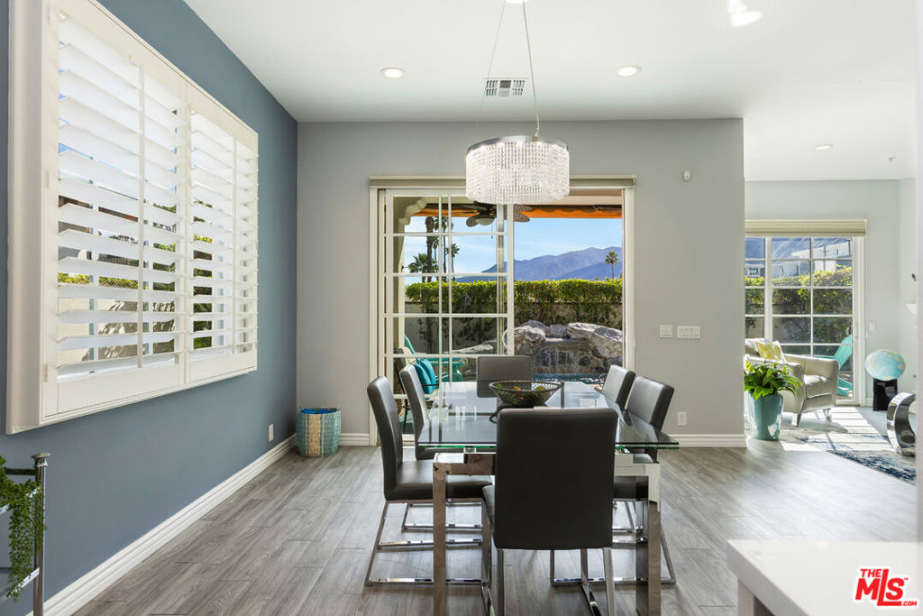 Located in the heart of Downtown Palm Springs in the illustrious Movie Colony neighborhood, this 2-bedroom, 2.5 bath condo features an immaculate floor plan, distinct Spanish accents and architecture, impeccable desert views and flexible positioning as a place either for getting work done peacefully, or venturing into town on a spontaneous adventure after entertaining guests at sunset. The downstairs is spacious and optimized for an indoor/outdoor flow. The perfect amount of blue accents, quartz, stainless steel and stone throughout the living, dining, kitchen and outdoor areas create a cohesive oasis vibe. Large floor to ceiling windows showcase the sparkling pool and entertainment area outside, which sits nestled amongst a desert backdrop of palm trees, mid century modern architecture and the San Jacinto Mountains. Upstairs features a second living room area that can easily be utilized as a reading nook or game room, and more stunning mountain views. A large bedroom with ample storage space and an en-suite bathroom also features views of the mountains, while the velvety primary suite boasts an impressive walk-in closet, a soaking tub perfect for a relaxing desert night and a romantic Spanish balcony that overlooks the Palm Trees of the Movie Colony neighborhood. A sturdy 2-car garage features epoxy floors and ample storage space. Call for pets. Long term renters preferred, open to short term leases of 60-90 days at $9,000/mo.