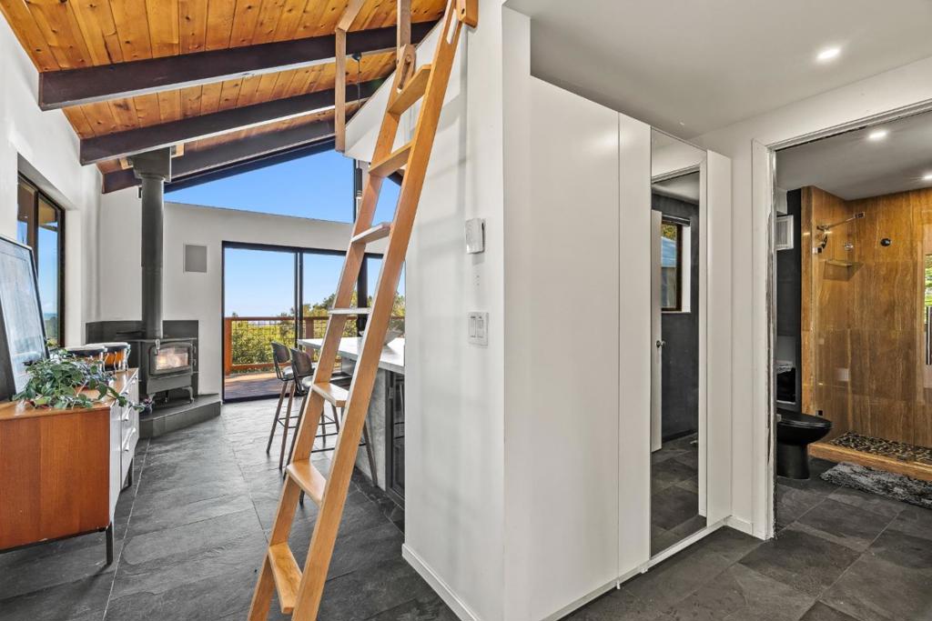Tucked away along the Corralitos Wine Trail, just minutes from Ferrari Ranch, Windy Oaks Winery, and the Corralitos Market, this 12+/- acre sanctuary offers the perfect balance of nature and comfort. Completely renovated with thoughtful and high end finishes, the home feels both grounded and elevated. Inside, the main living space is bright and airy with tons of natural light and vaulted beam ceilings that create an inviting, open atmosphere. The kitchens Perla Venata counters bring in soft, natural textures, while the bathrooms travertine shower adds a spa like touch. Soak in breathtaking views of the Monterey Bay from the loft bed when you wake up in the morning, and from the brand new deck as the sun sets. The detached studio with large sliding glass doors and its own bathroom offers abundant natural light and is perfect for guests or a private workspace. This property invites you to slow down and connect. Wander your own private mountain biking trails, practice yoga, have a picnic under the trees, or simply breathe in the quiet. With room for expansion and plenty of open space, the possibilities are endless. Whether you are seeking a private sanctuary, a vacation getaway, or a one of a kind investment, this mountain retreat offers it all.
