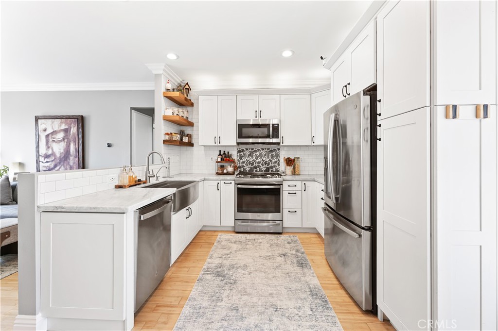 Experience refined living in this turnkey, thoughtfully upgraded carriage-style home. The kitchen showcases updated designer cabinetry, extended counter space, pull-out storage, stainless steel appliances, and a farmhouse sink with Reverse Osmosis filtration. Fresh paint, refinished bamboo floors with brand new bedroom flooring, and all-new interior doors elevate every room. Both bathrooms shine with updates, including a new primary vanity, fixtures, and shower door. Modern essentials include 2020 HVAC, 2025 water heater, smart lock, Nest thermostat, elevated custom closets, recessed lighting, media wiring, and upgraded ceiling fans offering effortless comfort. The garage provides added value with built-out overhead cabinets and a dedicated laundry table. Less than 7 miles to Laguna Beach, proximity to highly ranked schools, restaurants, grocery stores, and entertainment. Your dream is an offer away from becoming your reality.