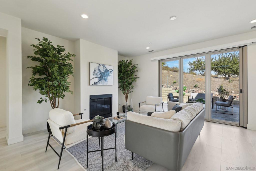 Stylish contemporary home in a desirable gated community with stunning valley views. Built in 2015, this 4-bedroom, 3.5-bath residence offers 2,576 sq. ft. of bright, open living space with soaring ceilings and a functional open-concept layout. The first floor features a private primary suite plus an additional en-suite bedroom, ideal for guests or multi-generational living. Upstairs includes two additional bedrooms offering comfort and privacy. The chef’s kitchen showcases a built-in refrigerator, granite countertops, and premium cabinetry, perfect for everyday living and entertaining. Enjoy seamless indoor-outdoor living in the spacious backyard with breathtaking views. Fully paid-off solar system adds energy efficiency and long-term value. Conveniently located near shopping, dining, freeways, and major tech hubs including Qualcomm, Google, and UCSD.