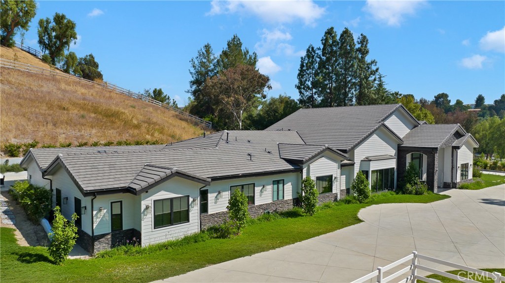Luxury Live Auction! Bidding to start from $5,000,000! Located within the prestigious 24-hour guard-gated community of Hidden Hills, this newly built modern ranch estate offers luxury living on approximately 2.1 private acres. Completed in 2021, the residence features soaring ceilings, designer finishes, and expansive walls of glass that create seamless indoor-outdoor living throughout the home. The property includes a fully equipped guest house, three-stall barn with tack room, regulation basketball court, and a separate fitness studio. The resort-style grounds offer a pool and spa, outdoor kitchen, and expansive lawns ideal for entertaining or relaxation. Enjoy Hidden Hills’ renowned equestrian trails and community amenities, just minutes from Calabasas shopping and dining, the Santa Monica Mountains, and Malibu beaches.
