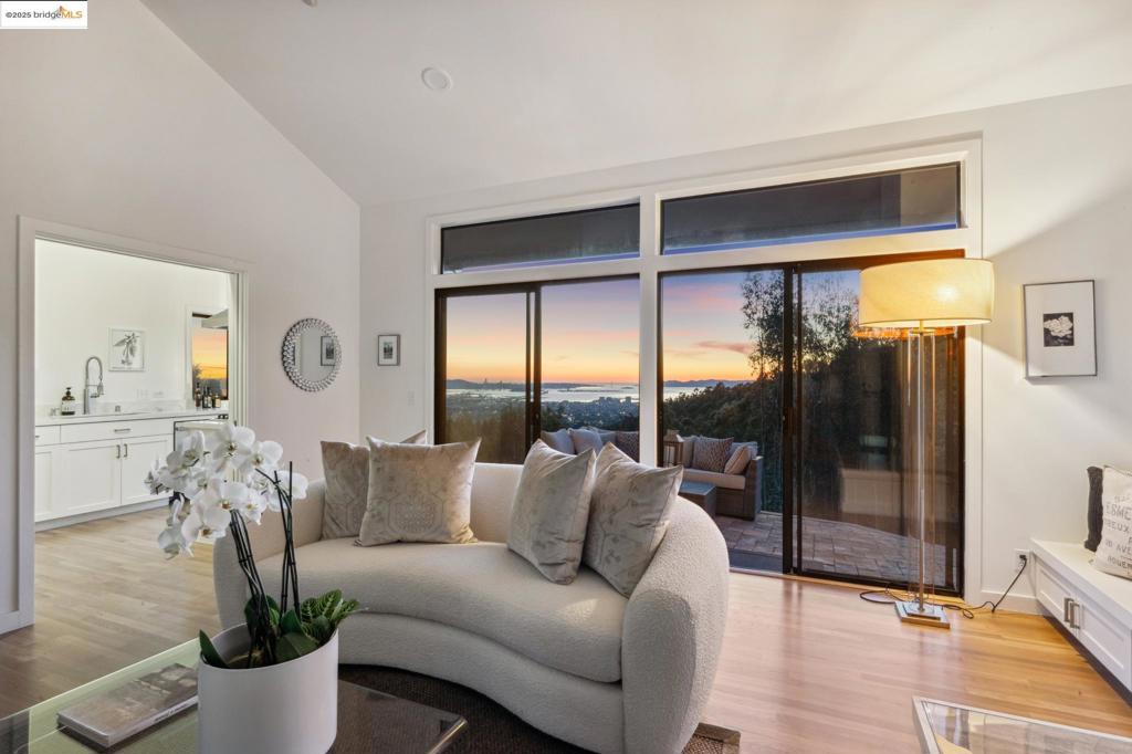 Privacy galore and VIEWS, VIEWS, VIEWS! This upper Montclair treasure has it all: 3 bedrooms, 3 baths, an A+ floorplan, 3 garages. Potential to use 1 bed/1bath as a separate unit with separate entrance! Dead-on views of SF, the Bay Bridge, the Golden Gate Bridge, Marin, Alcatraz, Angel Island + water views and city lights. The best of California’s indoor/outdoor living! Sited at the end of a private road for ultimate seclusion and serenity. Beautifully updated with designer finishes! A 10! Views: Ridge