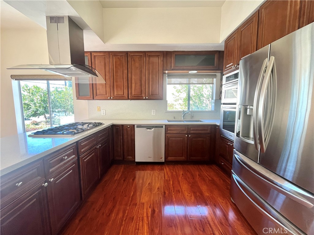 Move-in ready home located in a quiet community with distinguished Arcadia schools! Featuring 3 bedrooms and 3.5 bathrooms, including a ground level bedroom and bathroom, with updated modern kitchen, private outdoor patio and balconies. Kitchen with stainless steel appliances, refrigerator, built-in gas cooktop and range hood, oven, microwave, dishwasher, abundant built-in cabinetry. Breakfast counter and breakfast nook opens to a bright outdoor balcony. Spacious living room and open dining room with large windows offers plenty of natural light, built-in storage, and private balcony. Master bedroom suite features high ceilings, walk-in closet, and outdoor balcony. Master bathroom with separate shower, bathtub and double sink vanity. Laundry available inside the unit. Attached two-car garage with direct access and built-in storage. The community features a swimming pool and covers water and trash utilities. Excellent convenient location nearby Arcadia schools, restaurants, grocery stores, shopping mall, Santa Anita parks, Arboretum and golf course. (No pets allowed)
