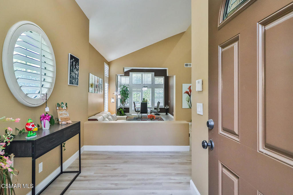 Beautiful Two-Story Home in Highly Desired Wood Ranch Neighborhood….First time rentalSituated on a corner lot, this 5-bedroom home boasts great curb appeal! The fabulous open floor plan features high ceilings and large windows, allowing for plenty of natural light. One of the bedrooms is conveniently located downstairs, with plantation shutters for added privacy. No carpet in the house. The living room, complete with a wet bar, leads to a formal dining area. The kitchen features a quartz island and double ovens, perfect for cooking and entertaining. The beautifully designed backyard is low-maintenance with pavers, opening up to the family room and leading to the downstairs bedroom and laundry area.Upstairs, you’ll find a master retreat complete with a fireplace, a spacious sitting area, and an en suite bath with dual vanities and two walk-in closets. There are also two additional bedrooms upstairs, along with a bonus room that can be used as an office, extra living area, or playroom–providing lots of options!The backyard includes a grassy area, patio, and privacy features, with direct access to a 3-car garage. The property also has owned solar panels, making it energy efficient. Close to schools, parks, and hiking trails, experience Wood Ranch living at its best!