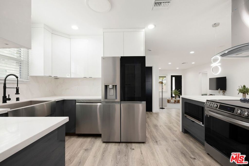 Perfectly positioned within one of Encino’s most tranquil and sought-after enclaves, this newly remodeled residence showcases a thoughtfully designed floor plan and a sophisticated blend of modern luxury and everyday comfort. Set on a quiet, cul-de-sac street, the light-filled home offers 4 bedrooms and 3 bathrooms appointed with elevated finishes throughout. A sun-drenched formal living room welcomes you inside and flows seamlessly into a chef’s kitchen featuring sleek custom cabinetry, granite countertops, smart stainless-steel appliances, and a striking waterfall-edge peninsula ideal for both entertaining and daily living. Additional conveniences include a dedicated laundry room, pantry, and spacious side yard designed for effortless functionality. The serene primary suite presents a newly redesigned en-suite bath and generous closet space, while all secondary bedrooms are enhanced with custom closet systems and chic barn-style doors. The backyard opens to peaceful rural landscape views and exceptionally rare and calming backdrop in the heart of the Valley. Thoughtful exterior upgrades include a low-maintenance artificial-turf front yard and a finished two-car garage with smart opener, epoxy flooring, and overhead storage offering excellent ADU potential. Three additional driveway spaces provide outstanding convenience. Ideally located near transit, bike and walking paths, and just moments from one of Encino’s most beloved dog parks, this residence delivers not only beautiful design, but a true lifestyle opportunity in one of Encino’s most welcoming enclaves.