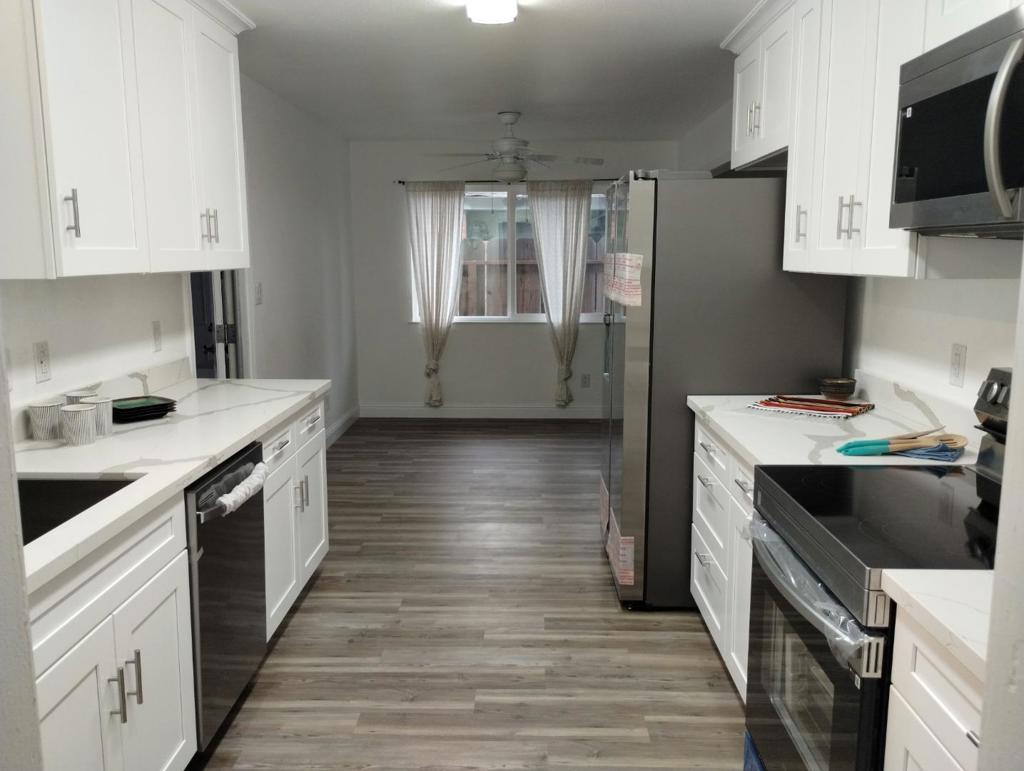 Beautiful !!! Ready-to-Move Single Family House Inside the heart of Merced Community College neighborhood. Located in desirable Bellevue Ranch established neighborhood in a cul-de-sac street. 4 Bedrooms/2 Baths, Fully Remodeled 2024. House features 1,721 SqFt of open floor living plan, New designed kitchen, Gleaming quartz counter-top and New Samsung Appliances, New double vanities in each Bathroom, New Luxury vinyl flooring, New double pan windows and doors, Freshly painted interior, stylish LED lighting fixtures, Large master bedroom with attached Bathroom and walk-in-closet. Fireplace in Living Room. Central heating and air conditioning. Species and relaxing backyard patio to enjoy eating and grilling after a busy day. Wraparound yard enclosed by a private fence. Attached 2 car garage. Additional storage and closet in hallway. Walk to Merced Community College and public transportation, 20 Minutes Drive to UC Merced, Beautiful bike trails. Minutes drive from El Capitan School, Close to W Yosemite Ave and E Olive Ave with its many restaurants, shops, markets and stores. Must see.