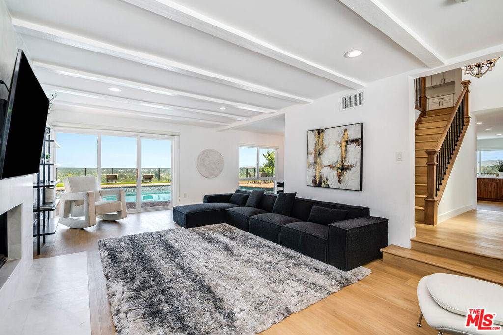 This beautifully remodeled residence is privately situated at the end of a long private driveway and offers unparalleled views. Designed for California living, the home showcases a chic, modern kitchen that flows effortlessly into a spacious dining and gathering area. The main level includes a refined bedroom and full bath, while the upper level offers three additional bedrooms and two beautifully appointed baths. The primary suite features an expansive walk-in closet with custom cabinetry, vaulted ceilings, and panoramic views from every window. This energy-efficient residence, enhanced with solar power, offers stunning views that can be enjoyed throughout the entire home.