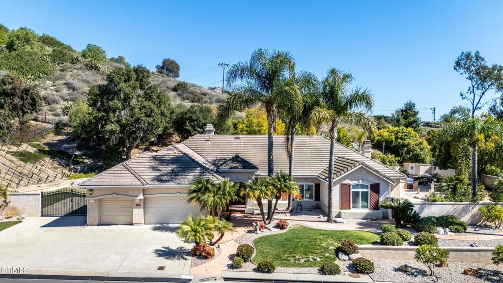Elegant Single-Story Retreat with Artistic Flair, Solar Power & Resort-Style Pool! Imagine this…you pull your motorhome into the driveway, check on your ‘private vineyard’ bearing part Chianti- part San Giovese grapes, have a quick pickle ball game, then take a dip in your pool. Set on a sprawling 1.3-acre lot, this exquisite single-story residence offers over 3,000 sq. ft. of meticulously designed living space, blending sophistication with artistic charm. Thoughtfully updated with high-end finishes, this 4-bedroom, 3-bathroom home is a masterpiece of style and comfort.Step inside to discover spacious, light-filled interiors, with unique architectural details and bespoke design elements. The open-concept layout seamlessly connects the gourmet kitchen, dining, and living areas, creating an inviting space for both relaxation and entertaining. The luxurious primary suite features a spa-like en-suite bath with direct access to the outdoors, while additional bedrooms offer versatility for guests, a home office, or a creative studio. Designed for modern efficiency, this home is equipped with a high-quality solar system and a backup generator, providing energy savings and peace of mind.Outside, a resort-inspired backyard awaits, featuring a sparkling swimming pool, lush landscaping, a vineyard and multiple patios–perfect for alfresco dining and serene sunset views. There’s room for your RV in a side yard.With ample privacy and room for expansion or customization, this home is a rare find for those seeking elegance, space, and artistic charm.Located in our prime Camarillo setting, this home offerst he perfect blend of seclusion and convenience, just minutes from top-rated amenities, dining, and outdoor recreation.Close by are the 118 and 101 Highways – 45 minutes to Santa Barbara and 45 minutes to Los Angeles – near a local airport, shopping and AmTrak.