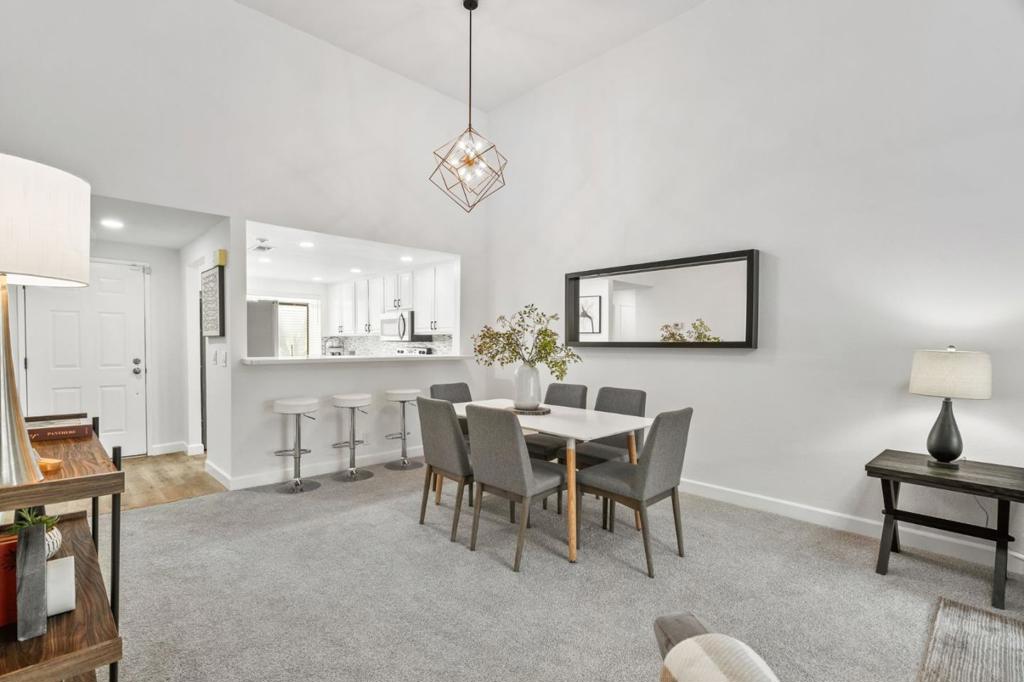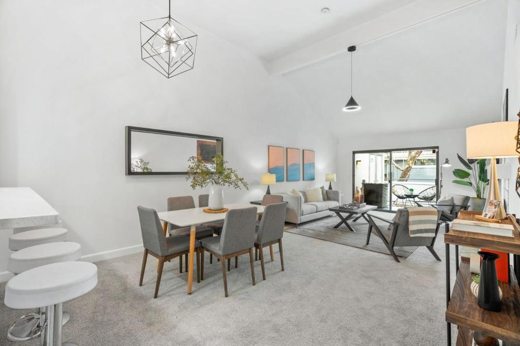 Welcome to this charming top floor, 2-bed, 2-bath home located in the vibrant city of Newark. With a spacious 1,448 sq. ft. of living space, this home offers a comfortable and functional layout. The home is designed with high walls and vaulted ceilings, giving it a grand and airy feel throughout. The kitchen is equipped with modern amenities including an electric cooktop, dishwasher, microwave, and refrigerator, making meal preparation a breeze. The dining area provides flexibility with both a breakfast bar and a dining area within the living room. Cozy up by the fireplace in the living room, perfect for those cooler evenings. The home is kept comfortable with central forced air heating and both ceiling fans and central AC. The bathrooms are well-appointed with double sinks and a combination shower and tub. Convenience is key with an in-utility room laundry area, complete with a washer and dryer. The property is situated within the Newark Unified School District. Additional amenities include a single-car garage. One of the best features of this home is its proximity to a variety of shopping options. Whether you need daily essentials or a special shopping experience, you’ll find plenty of choices just moments away. Don’t miss the opportunity to make this lovely home yours!