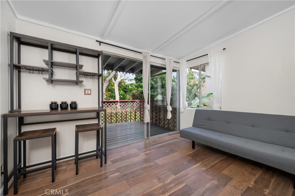 Tucked away on a quiet cul-de-sac in the heart of Laguna Village, this spacious studio is the ultimate coastal retreat. Offering a seamless blend of modern comfort and natural beauty, the home features warm wood flooring and a thoughtfully remodeled kitchen and bathroom. Step through the glass doors to your own private deck, surrounded by lush, mature landscaping—perfect for morning coffee or evening unwinding. With an in-home washer/dryer and all utilities included, this is effortless Laguna living just minutes from world-class beaches, dining, and boutiques.
