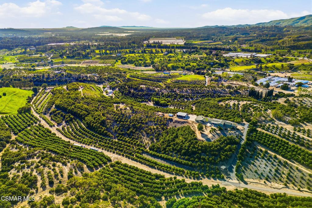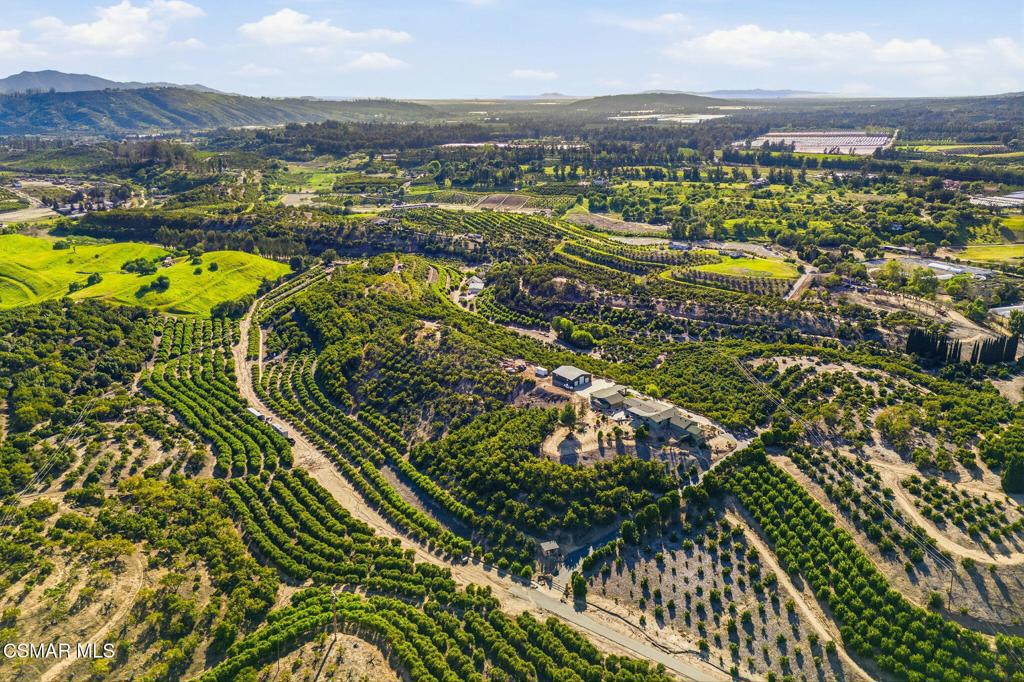 Set on 20.5 acres of producing avocado and lemon groves, this exceptional ranch offers privacy, strong confirmed Orchard income with good potential ADU income, and breathtaking 360-degree panoramic mountain and valley views. Garage space for up to 15 cars. The orchard is actively producing and generating hadsome, consistant annual income, making this a rare opportunity to own a working agricultural estate with strong investment appeal.The 2,160 sq. ft. single-story modular home features 3 bedrooms and 2 bathrooms, a fireplace, spacious living room and family room, dedicated laundry room, updated windows, and a beautifully renovated interior with waterproof vinyl plank flooring throughout. Expansive windows showcase stunning views from every room. The home, and all the other structues is protected by automatic backup generator for added reliability and peace of mind.Outdoor living is highlighted by two covered patios with sweeping views of the Santa Monica & Topa topa mountain and valley views, ideal for relaxing or entertaining. The expansive backyard is fully enclosed with an 8-foot green chain-link perimeter fence and offers abundant space for a custom pool, a another ADU option, or outdoor entertainment area.A long asphalt driveway lined with mature trees leads to a gated entry with lighted automatic gates, creating a grand and private arrival. The property features paved access roads and includes four single-story wood-framed structures built to code, offering versatility for residential, agricultural, or operational use.The land is supported by a 325 GPM AG water well installed in 2013 with The county water master 36.34 acre feet allocation. along with drought-tolerant landscaping on automatic sprinkler systems sourounding the home and other buildings..Additional improvements include a 5000 sq ft stoarge yeard with 8′ high fence and privacy clothe and 20 foot wide entry gate , an 1,800 sq. ft. metal building with electrical service and roll-up doors built in 2017, a three-car garage, and a 500 sq. ft. carport for ample vehicle and equipment storage. A private 725 sq. ft. studio ( ADU ready) with full bath, closet, and kitchen provides excellent guest, and yet another oversized garage with huge gym space for staff, or rental potential.This unique property blends income-producing agriculture, multiple structures, resort-style outdoor living, and unmatched privacy–an extraordinary ranch estate with endless possibilities.
