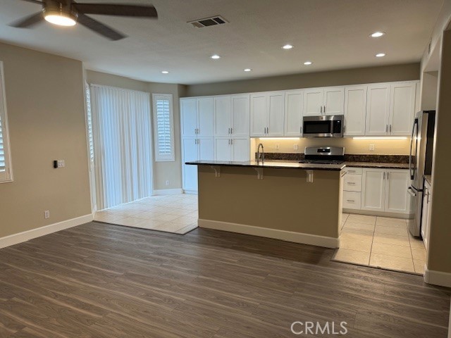 View home in the desirable hillside community of Serrano Heights. Bright and open floor plan features 4 bedrooms with a convenient main floor bedroom and bath. Enjoy views of the hills and city lights from the low maintenance backyard. Large formal living room and formal dining area is ideal for entertaining. Spacious family room offers a cozy fireplace. Entertain in the gourmet kitchen with granite counters, a breakfast counter and lots of storage. Laminate floors and plantation shutters on the main level. Second level has 3 bedrooms and 2 baths. The master bath offers a soaking tub and shower, dual sinks and a built-in organizer walk-in closet. All Bedrooms have ceiling fans and spacious storage closets. The laundry room is conveniently located on the second level. Home has direct access to the 2-car garage which offers lots of custom built storage cabinets and shelves. Enjoy your evenings walking to the local parks and surrounding hiking trails. Prestigious distinguished local schools.