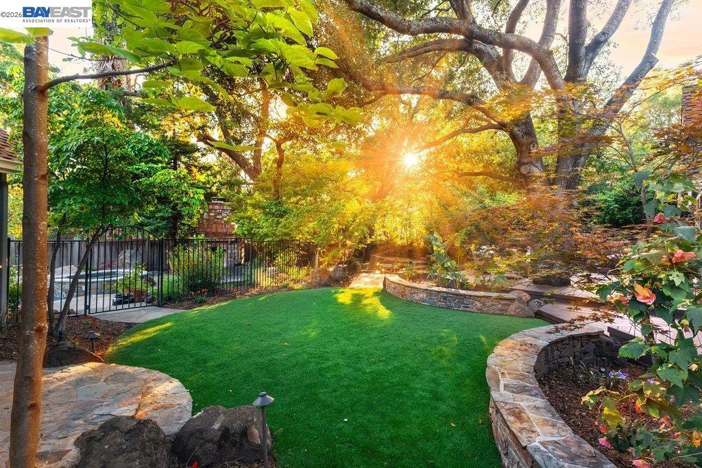 Sought after gated Alamo location! Nestled beneath towering heritage oaks, this extraordinary custom-renovated home offers an unparalleled blend of architectural grandeur and refined living. Predominantly single-story with a versatile upper-level bonus suite, boasting 4-bedroom, 3.5-bath and 3680 sq ft situated on a private and picturesque .45 acre lot. From the moment you enter, timeless design commands attention — Brazilian walnut and travertine floors, soaring ceilings, exposed wood-and-iron beam trusses, Alder millwork and crown molding create an atmosphere of warmth and sophistication throughout. At the heart of the home, the chef’s kitchen is a true showpiece—outfitted with premium Wolf cooktop and range, a Sub-Zero refrigerator, an expansive island, walk-in pantry, and a sunlit dining area. French doors open seamlessly to the backyard, while the kitchen flows effortlessly into the inviting family room, complete with exposed wood beams, a statement fireplace, wine fridge, and dedicated tasting area—creating an ideal setting for both intimate gatherings and grand entertaining. The luxurious primary suite features a spa-inspired bath and large walk-in closet while three additional bedrooms — including two with a Jack-and-Jill bath, and one en-suite — offer space for every lifestyle. Owned solar, three-zone HVAC, and dual-pane windows round out the thoughtful details. The resort-inspired backyard is nothing short of spectacular. Designed for year-round enjoyment, it features a sparkling pool and spa, outdoor fireplace and firepit, built-in BBQ, multiple seating areas, lush artificial turf, and a serene koi pond stocked with prized Japanese koi fish—creating a peaceful, private oasis. This extraordinary property delivers the ultimate in privacy, sophistication, and lifestyle. A rare offering for the most discerning buyer. In close proximity to some amazing hiking and biking trails, Roundhill Country Club, and freeway access.