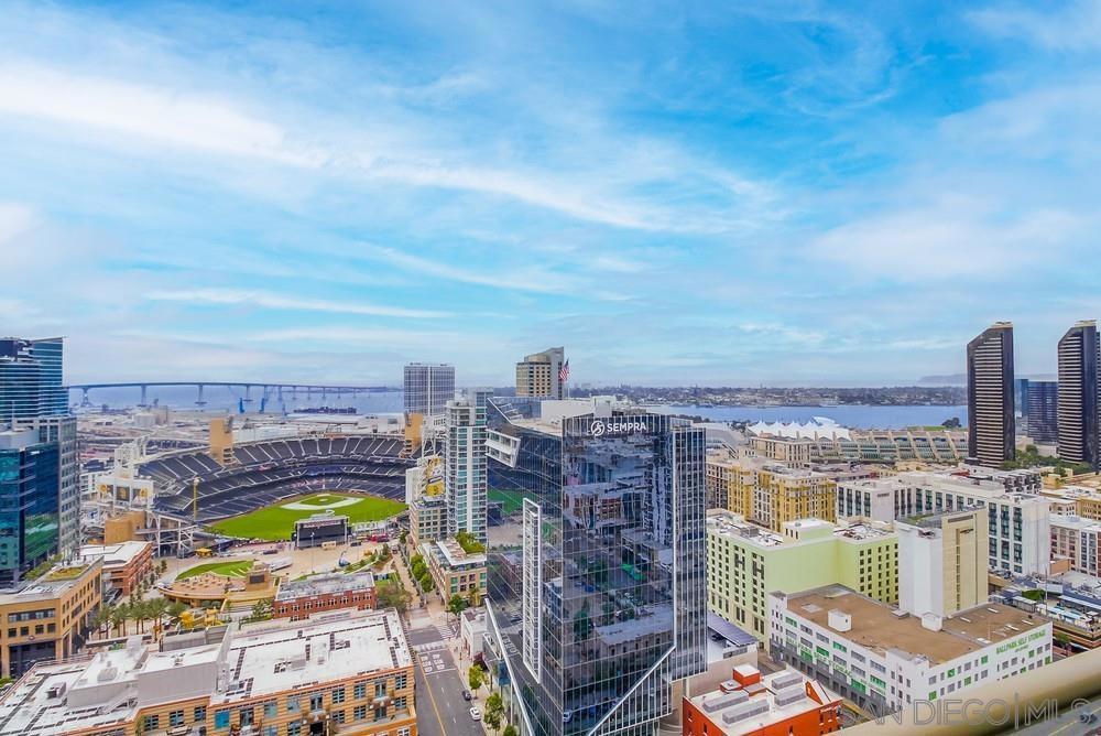 Perched on the 28th floor of The Mark downtown San Diego. The perfect season setup Padres games in the background, warm evenings, and music drifting from balconies? Are you in?? This exceptional residence offers sweeping south, west, and north-facing views, including direct views into Petco Park. Spanning over 2,000 sq ft, the spacious floor plan features two large en-suite bedrooms plus an en-suite den/optional third bedroom, providing flexibility for guests or a home office. Enjoy a private balcony with stadium views, ideal for taking in games and concerts, along with an expansive terrace showcasing stunning views of the downtown skyline, Point Loma, and Coronado—perfect for entertaining. The Mark offers premier amenities including a private driveway, 24-hour lobby attendants, fitness center, resident lobby, resort-style lap pool and spa, multiple lounge areas, outdoor dining and entertainment space with a full kitchen and pizza oven, lush landscaping, and a conference room. Additional highlights include dedicated underground parking spaces. Located in the heart of East Village, just steps from dining, entertainment, and everything downtown San Diego has to offer.
