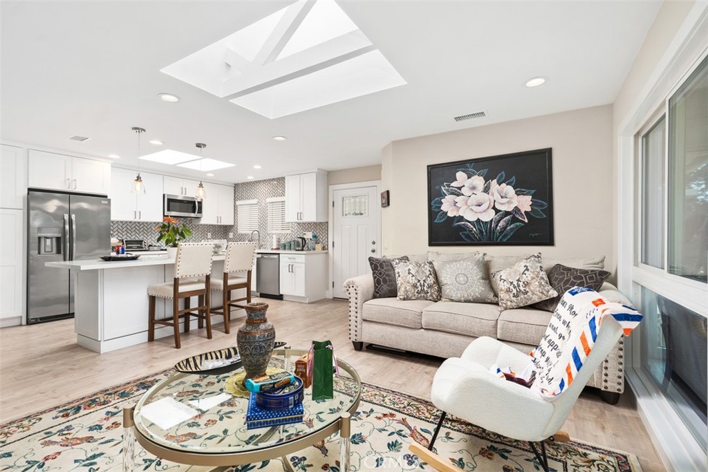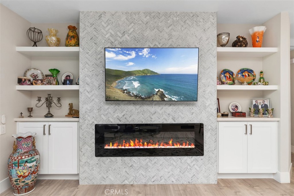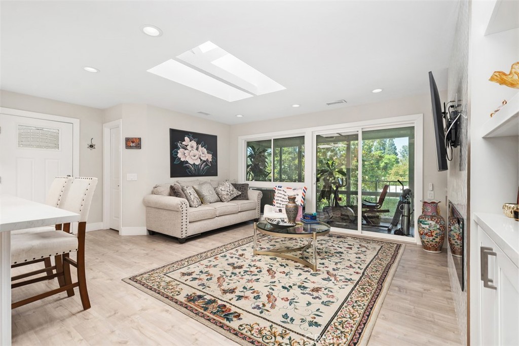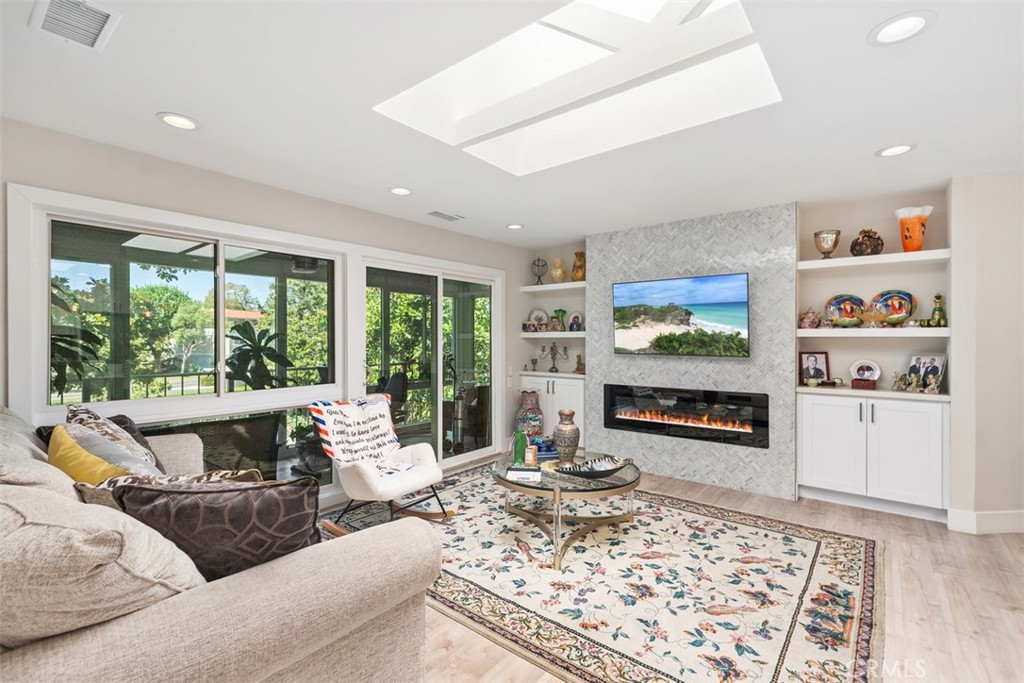 GORGEOUS home in the premier community of Laguna Woods Village has been completely remodeled. No expense spared for this Casa Linda floor plan. There are no stairs leading from the nearby carport and no residences above the unit. The home only shares one common wall with neighbors offering additional privacy. Newer flooring throughout with tasteful tile/stone work within the bathrooms. There are quartz counters, stainless steel appliances and newer cabinetry in both the kitchen and bathrooms. Custom built-in entertainment center includes an electric fireplace, a flat screen TV to rest above and bookshelves with cabinets on either side. The master bedroom includes a walk-in closet, a master bathroom with a generously sized shower. The home includes a washer/dryer, 3 newer skylights, newer solar tubes, recessed lights and a newer central cooling and heating system. There is a private enclosed balcony with porcelain tiling overlooking the neighborhood. Laguna Woods Village is a thriving community with many activities to enrich your lifestyle! Living here is like belonging to a country club.
