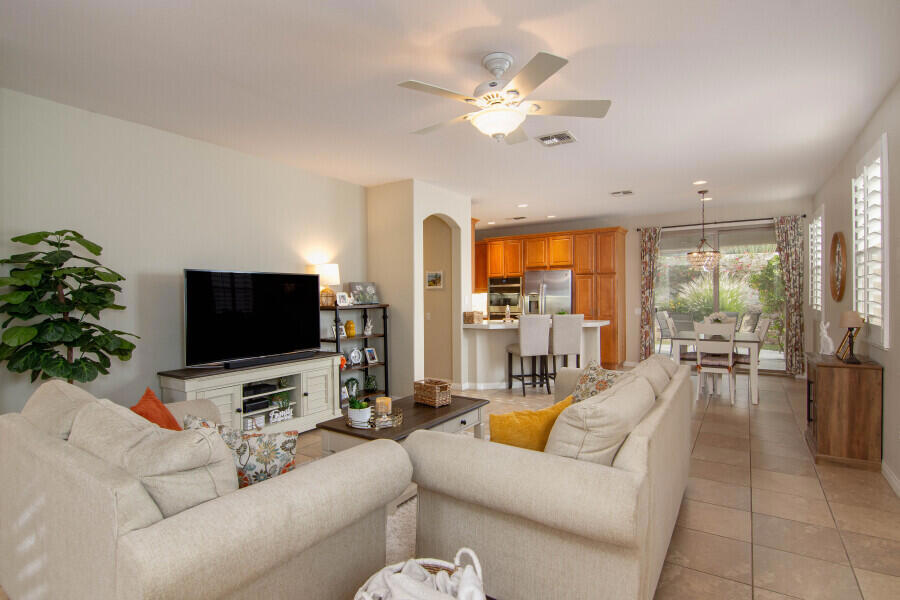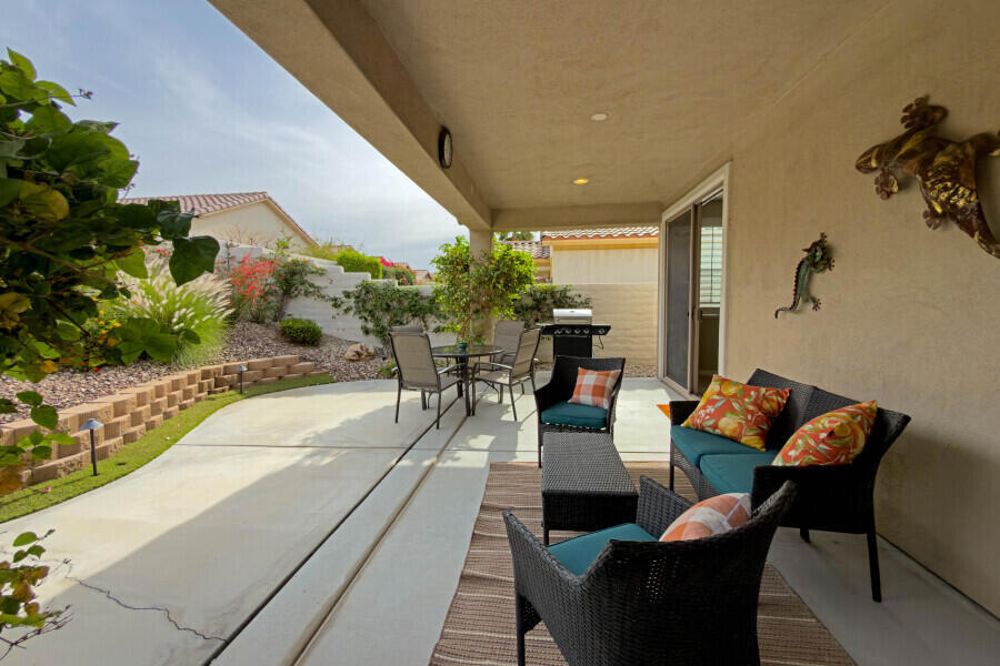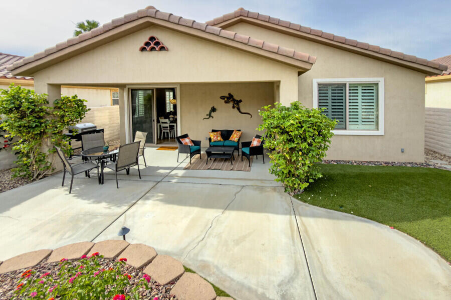 Lovely San Ysidro model… Move in Ready! Two Bedrooms, 2 Updated Baths, Den/Office. Remodeled Kitchen with Quartz Counter top, White Kohler Undermount Single Bowl Sink, Stainless Steel GE Profile Appliances, GE Profile Fridge Included! Dining area off Kitchen with Slider door to Covered Patio. You’ll Enjoy the Private North facing Easy Care Yard with Mature plantings. King Sized Primary Bedroom with view to lovely yard. Ample sized walk-in closet! Updated Primary Bath with Custom Shower, Dual Sink Quartz Vanity! Guest Bedroom is Queen Sized with bath adjacent off Hallway. Guest Bath has also been Updated and is ideally located to offer maximum privacy for you & your guests. Plantation Shutters! Ceramic tile flooring thru out, carpet in Bedrooms. Laundry Room w/Quartz Counter top, deep soaking sink, plus extra Cabinets for Ample Storage space. Two Car Garage. Newer A/C system (2020). New Insulated Double Garage Door, coming soon! This home is located in Highly Desired Sun City Shadow Hills… Premiere Gated Retirement Community offers many Amenities/Activities with affordable HOA Dues, includes Internet.You’ll Enjoy Two Clubhouses, Two Golf Courses, Shadows Restaurant, Two Bistros, Miles of Walking, Doggie Parks, Concerts, Performing Arts, Clubs & Activities, Game Rooms, Library area with Cozy Fireplaces, Craft Rooms, Billiard Room, and So Much more! Three Pools (one is Indoor). Tennis, Pickleball, Driving Range, Two Putting Courses! Two State of the Art Fitness Centers, one offers an Indoor Walking Track. This Lovely Community is located in North Indio and offers Easy access to Shopping, Dining, Medical, Entertainment, Casinos, Acrissure Arena!