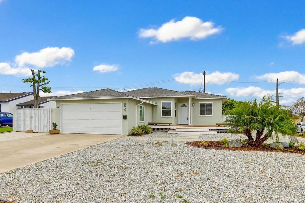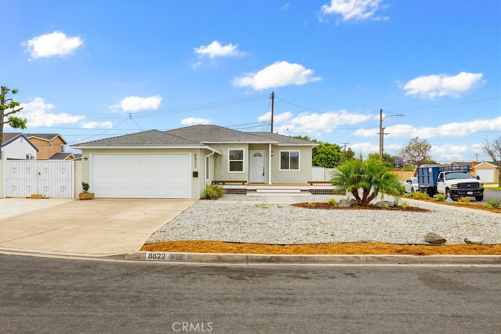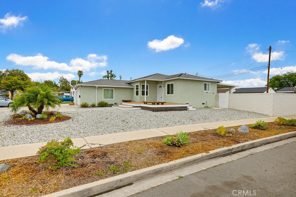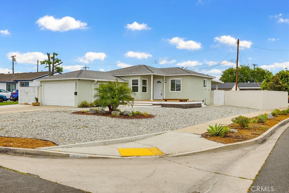 Mid-century Modern 3 bedroom with GREAT ADU & JADU POTENTIAL! Or 2 duplexes with SB 9! Oversized 7,526 square foot flat lot on a cul-de-sac AND street to alley AND corner lot and RV/boat parking. This maximizes options for ADU/JADU/SB 9 lot split. Beautiful updated home with large fenced backyard AND huge front yard and side yard ON A QUIET CUL-DE-SAC! Great home in wonderful location to move in immediately, plus add tons of value and living space with the expedited ADU/JADU/SB9 60-day plan approval! Friendly modern wrap-around entertainment deck. Immaculate backyard with pristine evergreen lawn and covered relaxation patio. Room for many fruit trees! Updated eat-in kitchen with Shaker cabinets, quartz counters and deep basin sink. The kitchen comes fully equipped with a premium stove, oven, microwave, and refrigerator. A washer and dryer are also included. The updated bathroom features modern finishes that complement the home’s refreshed feel throughout. The property features an attached 2-car garage, offering convenient parking and additional storage space.