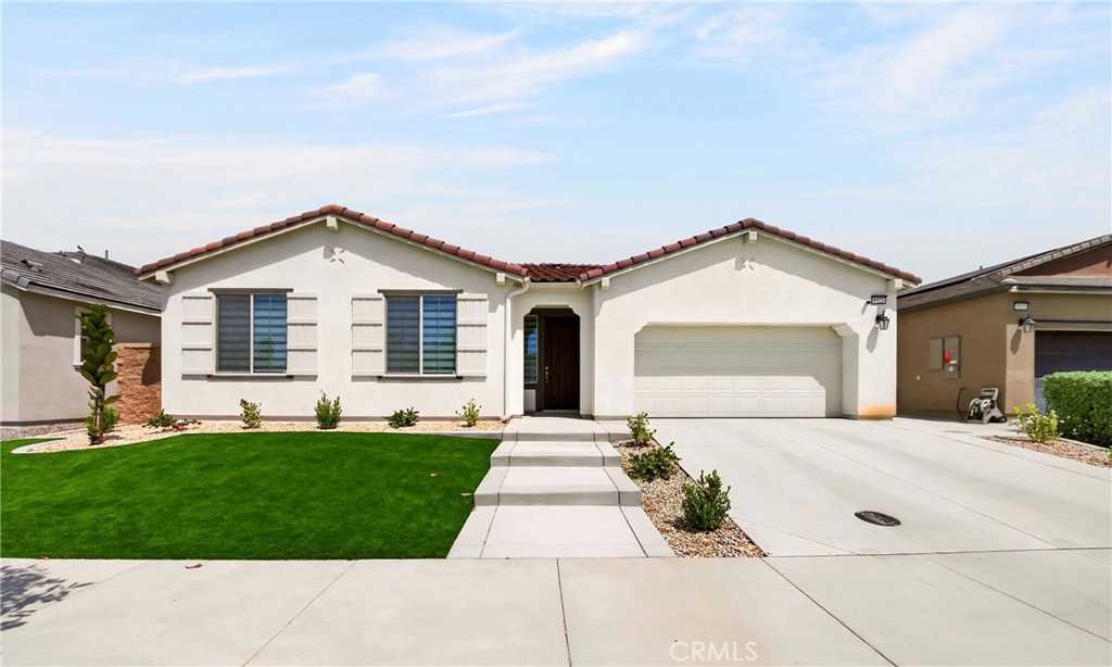 Welcome to this exceptional single-family home in Jurupa Valley! This beautifully maintained single-story home offers 3 bedrooms, a versatile office area, and 2.5 bathrooms, providing flexible living space to suit your needs. The home features a spacious living room with stylish laminate flooring, creating a warm and inviting atmosphere. Laminate flooring extends throughout the living room, kitchen, and hallway, complemented by tile flooring in the bathrooms and the laundry room. The bright and open kitchen is thoughtfully designed with quartz countertops, a modern backsplash, stainless steel appliances, a huge center island, and a walk-in pantry—perfect for both everyday living and entertaining. Enjoy low-maintenance outdoor living with artificial turf in the front yard and extensive backyard cement work completed in 2025—ideal for gatherings and relaxation. This home is equipped with 14 leased solar panels at $161/month through SunPower. Additional features include custom blinds and upgraded recessed lighting throughout the home. Don’t miss this great opportunity in Jurupa Valley!