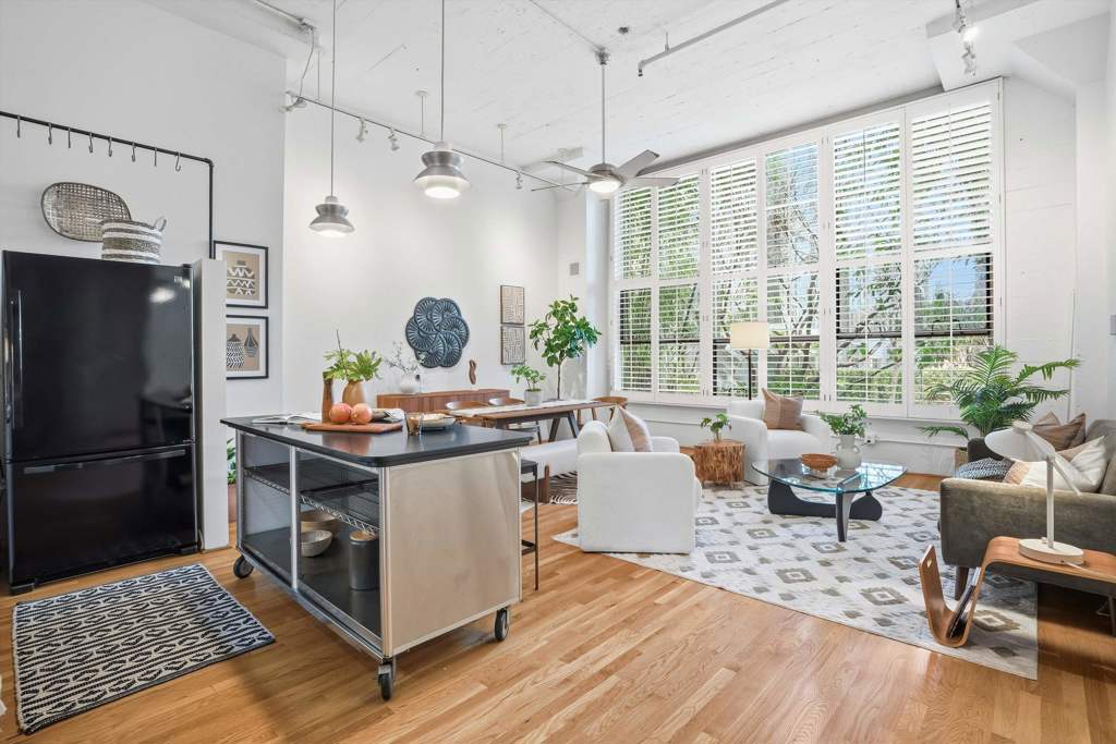 Here is your opportunity to own a rarely available west-facing, ground-floor loft in the award-winning Emeryville Warehouse Lofts, designed by acclaimed architect David Baker and ideally located in the heart of Emeryville. Offering one of the larger units in the building at approximately 1,307 square feet of living space, this spacious residence showcases soaring warehouse-style ceilings, large windows with blackout shutters, and custom built-in bookshelves that add both character and functionality. Completely renovated in 1999 from one of the original Emeryville artists warehouses, the home features rare interior volume and an open layout well-suited for comfortable everyday living, working from home, or entertaining. The flexible floor plan includes a lofted area ideal for a home office, guest space, or creative use, along with in-unit laundry and a walk-in closet for added convenience. Ground-floor access provides ease of entry while maintaining privacy and the grand scale of a true warehouse loft.
