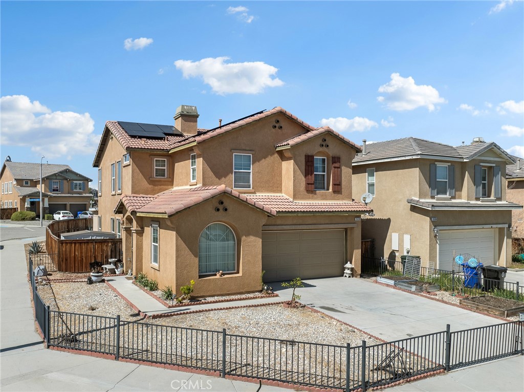 Welcome to 15126 Bluffside Lane in Victorville, where comfort, efficiency, and commuter convenience come together in one exceptional home. This spacious 4-bedroom, 3-bath residence offers approximately 1,993 square feet of thoughtfully designed living space, perfect for modern lifestyles. From the moment you step inside, you’ll appreciate the inviting living room featuring a cozy fireplace—an ideal place to gather and unwind. The kitchen offers both functionality and charm with tile countertops, a walk-in pantry, and a stainless steel range, refrigerator included, creating a welcoming space for everyday meals and entertaining. One of the home’s most valuable features is the fully paid-off solar system at closing that was just installed at the end of 2024 with a 25 year warranty, complete with 24 panels, Tesla Powerwall 3 System, integrated battery, inverter, system controller. Enjoy incredible energy savings with the current seller reporting no electric bill, giving you both peace of mind and long-term financial benefits. Additional upgrades include a new electric water heater as well as updated A/C and heating systems for year-round comfort plus smart home nest thermostat. The flexible floor plan includes a convenient downstairs bedroom and bathroom with shower—perfect for guests, multigenerational living, or a private home office. Upstairs, a spacious loft offers endless possibilities as a media room, play area, or additional lounge space. The primary suite provides a relaxing retreat with a walk-in closet and an ensuite bathroom featuring double sinks, a soaking tub, and a separate shower. The upstairs guest bathroom also includes double sinks and a tub/shower combo, while the upstairs laundry room comes complete with a washer and dryer for added convenience. Two additional guest bedrooms upstairs. Step outside to enjoy a covered back patio, perfect for relaxing or entertaining year-round. The backyard also features an added storage room plus two storage sheds, offering plenty of space for tools, hobbies, and outdoor equipment. An attached two-car garage adds everyday practicality, while the home’s location makes commuting easy with quick access to I-15 Freeway and Highway 395. If you’re looking for a home that blends space, smart energy efficiency, and commuter-friendly living, 15126 Bluffside Lane is ready to welcome you.